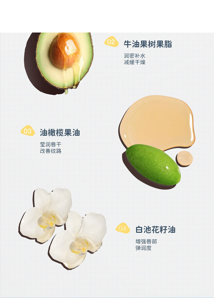 化妆品功效 补水保湿,防干裂,呵护唇周