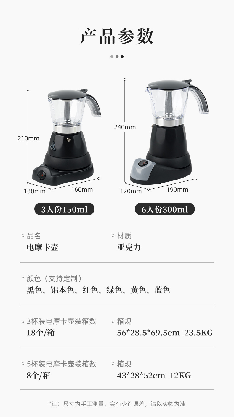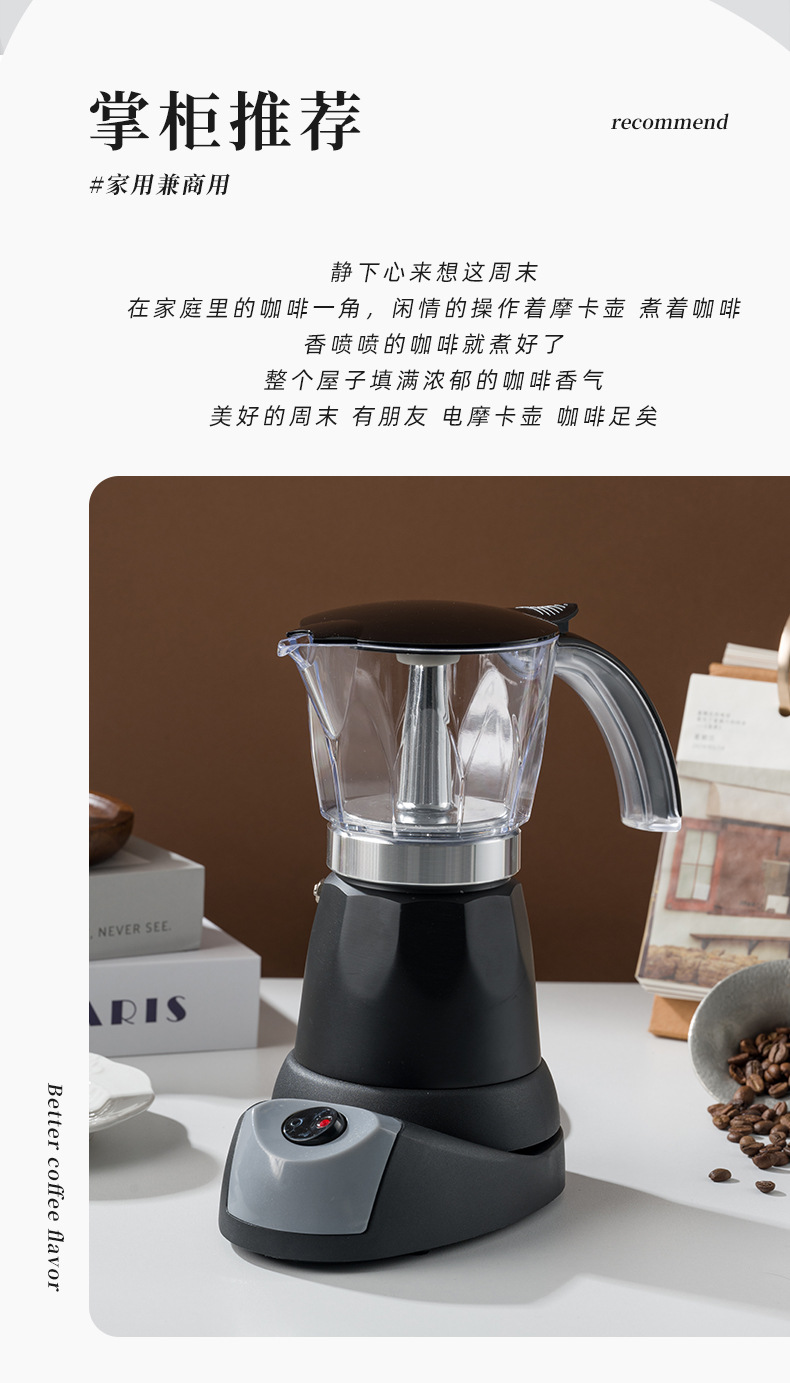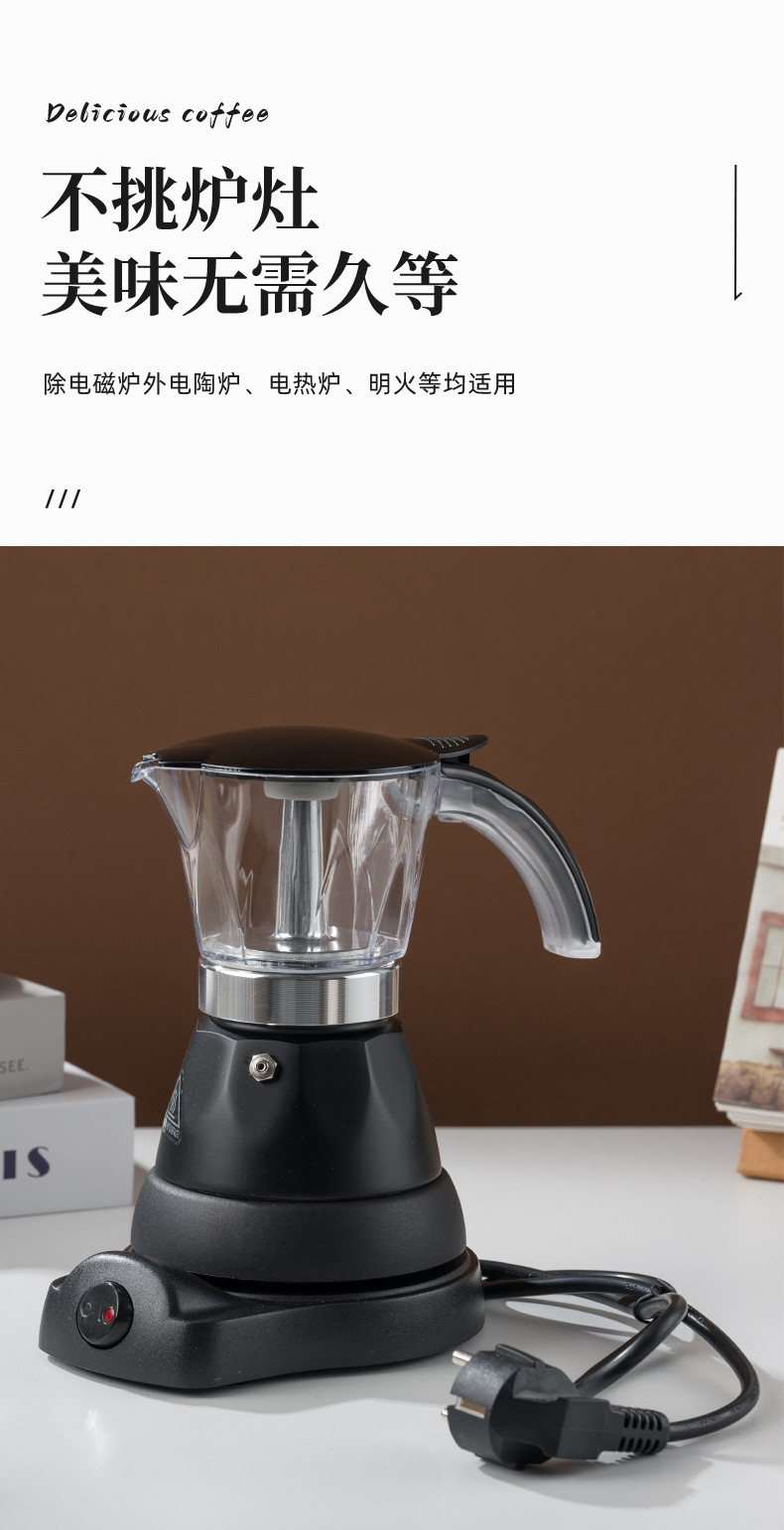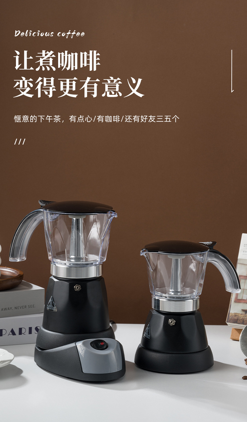 クロスボーダー現物可視電動アルミ製電気式コーヒーポット視覚式携帯型コーヒーマシンモカ壺