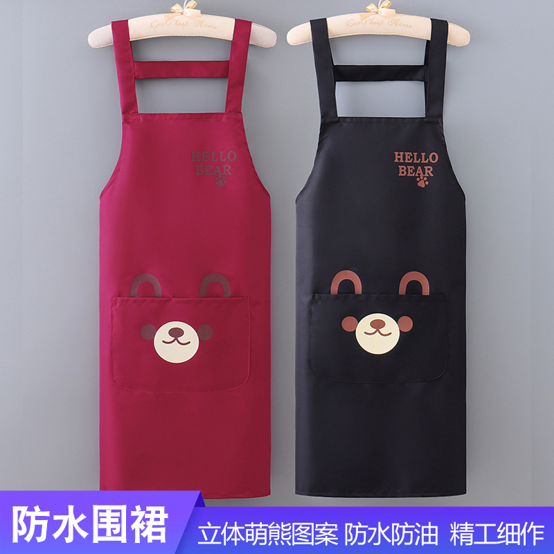 防水三次元かわいいクマエプロン家庭料理防汚レディースサスペンダーエプロン漫画大きなポケット無地作業服