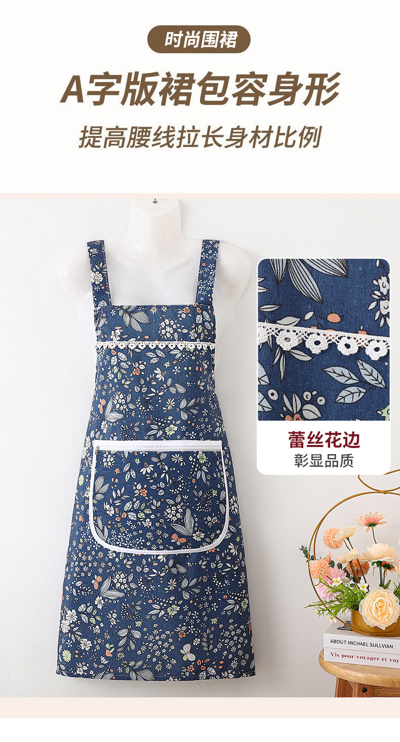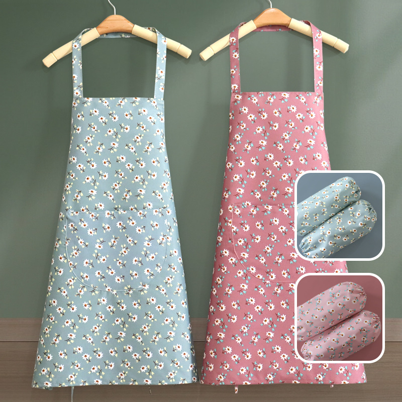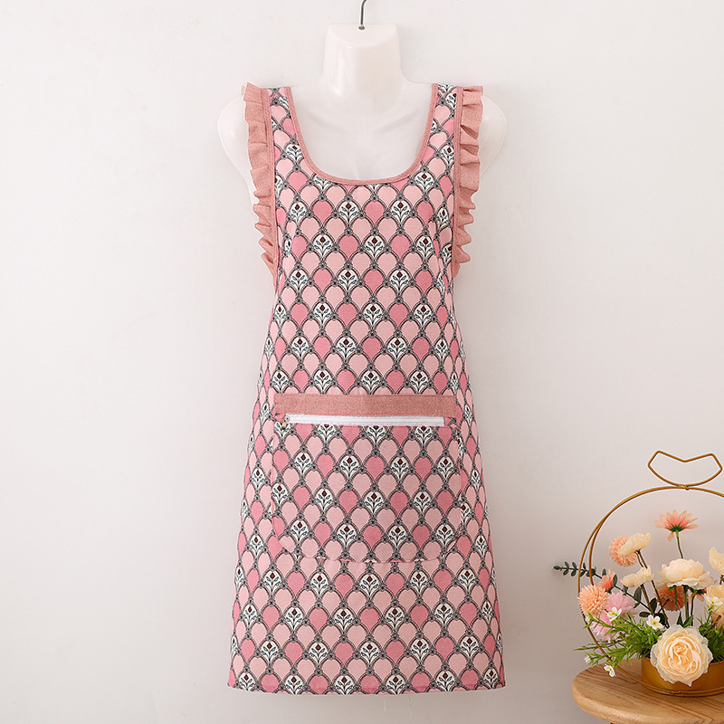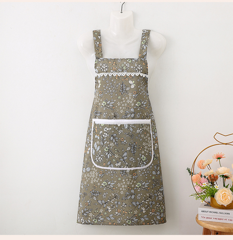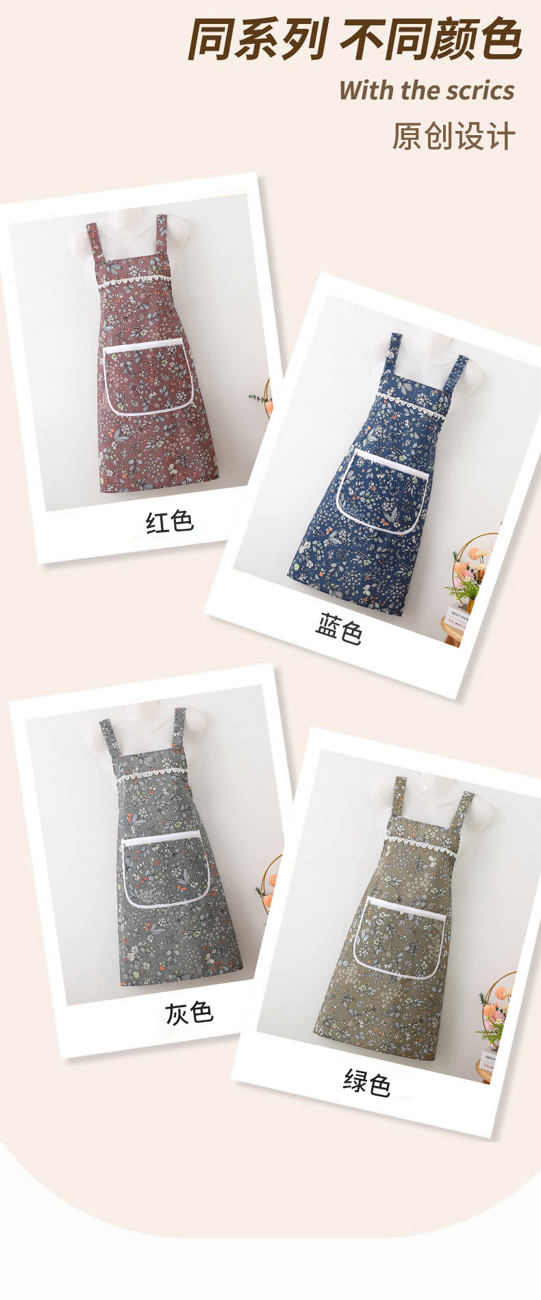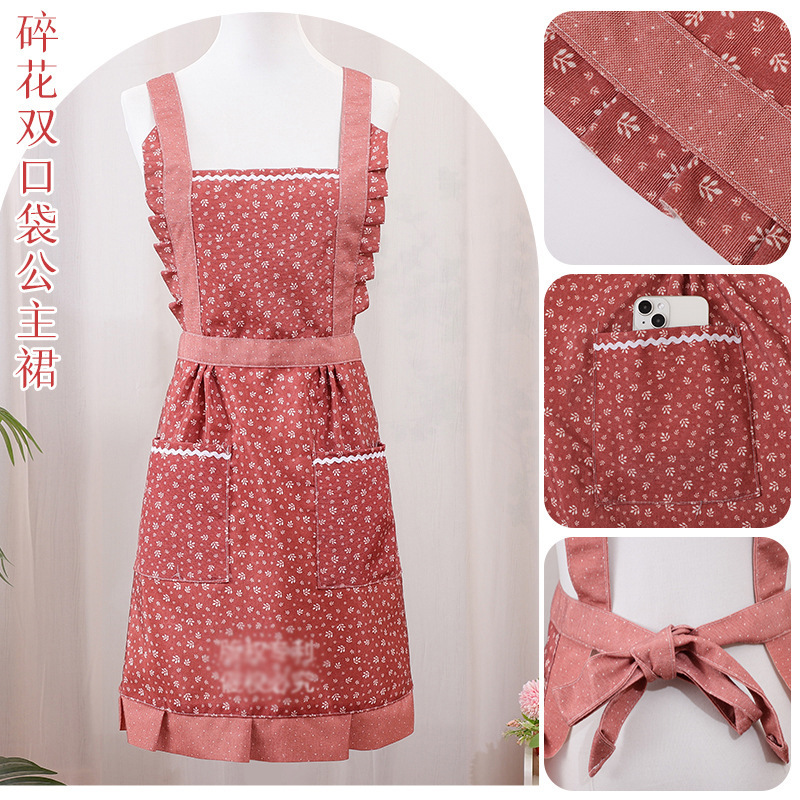 シンプルな花の背もたれ付きプリンセススカートのダブルポケット防汚女性エプロンホームキッチン調理油防止作業服
