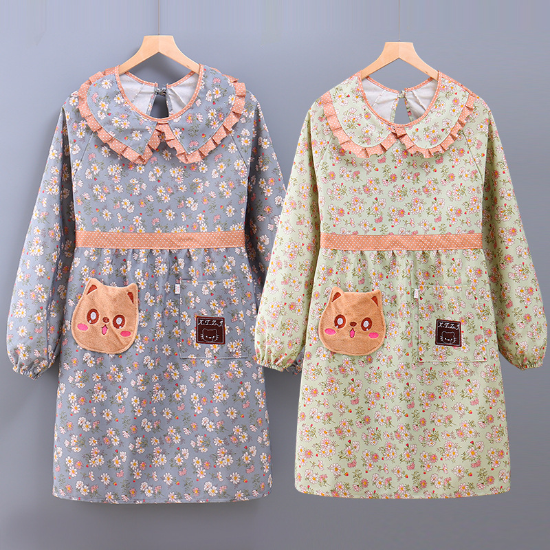 太った長袖エプロン家庭用キッチン油汚れ防止綿布カバーが大人の通気性を高める作業服の反服装