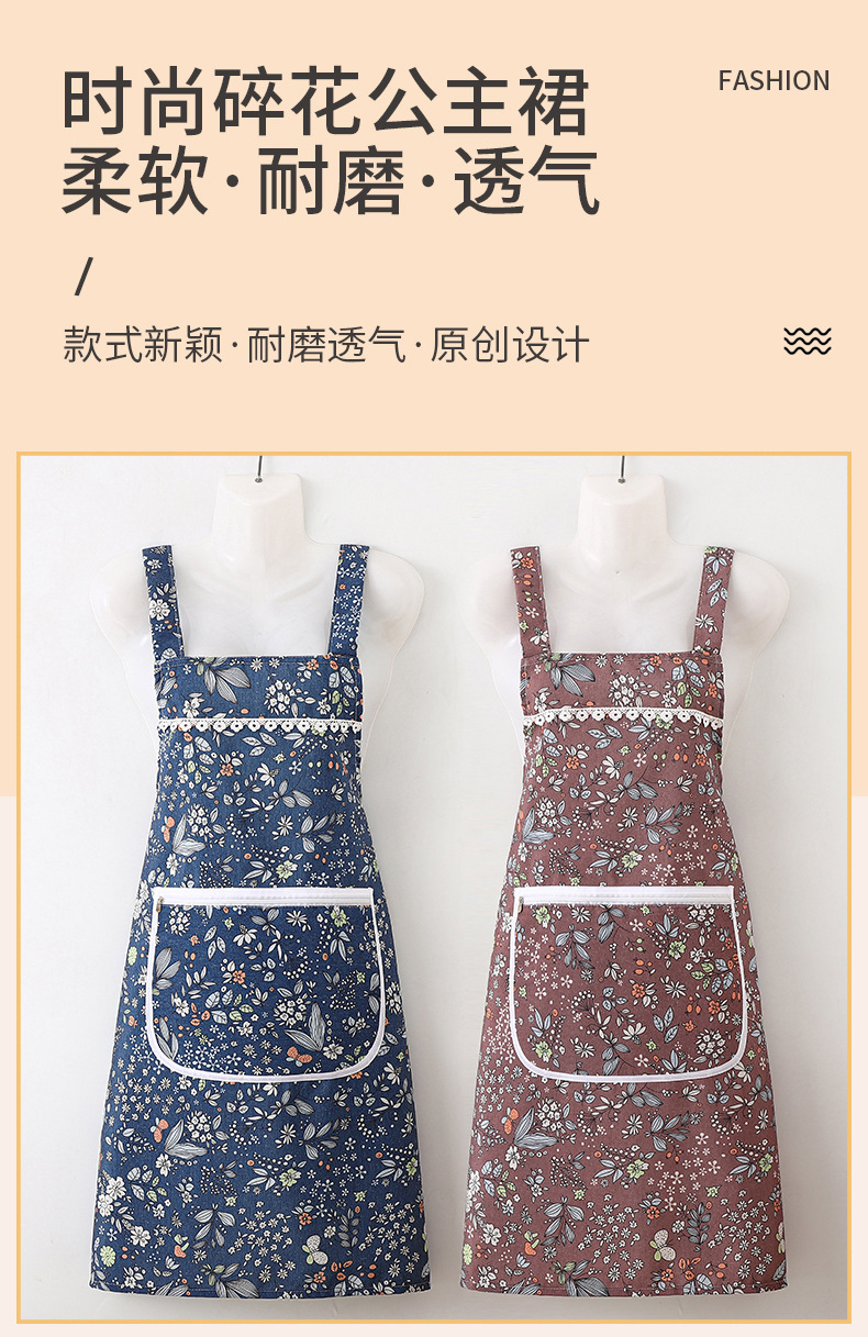 时尚碎花公主围裙厨房家用大口袋背带围裙网红透气耐磨公主围裙