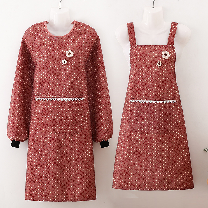 ファッションの花の綿の布のカバーの家庭の防汚の女性の長袖のエプロンは服の甘い洋風の仕事のカバーを着ます。