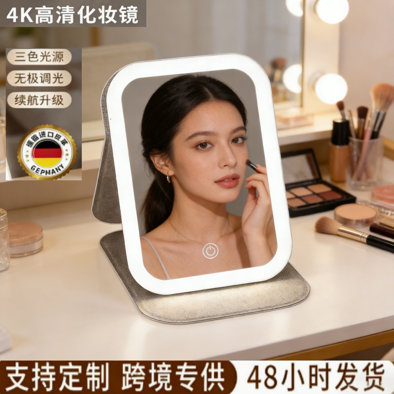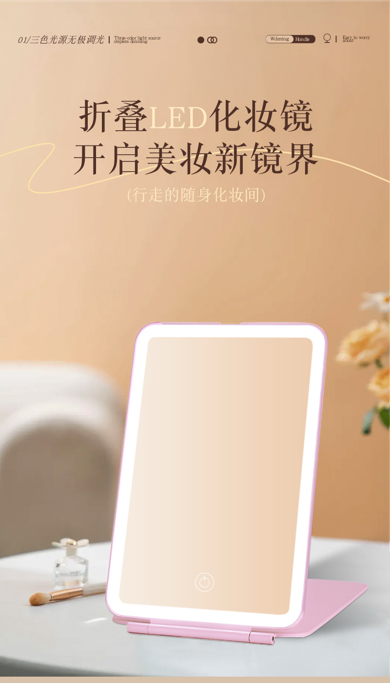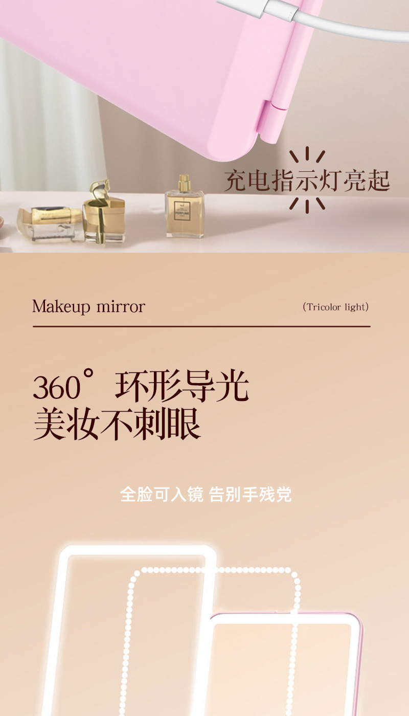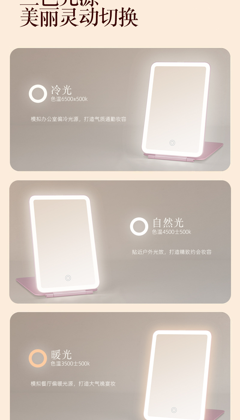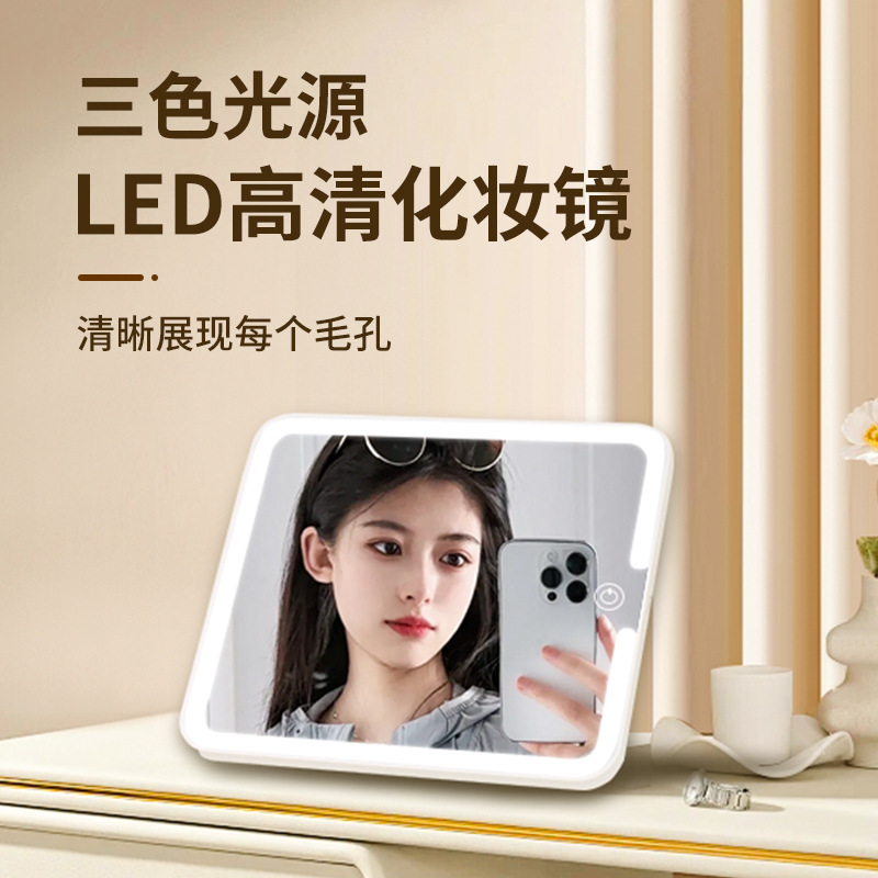 led化妆镜镜子三色光带灯旅行办公便携折叠礼物镜子梳妆台镜
