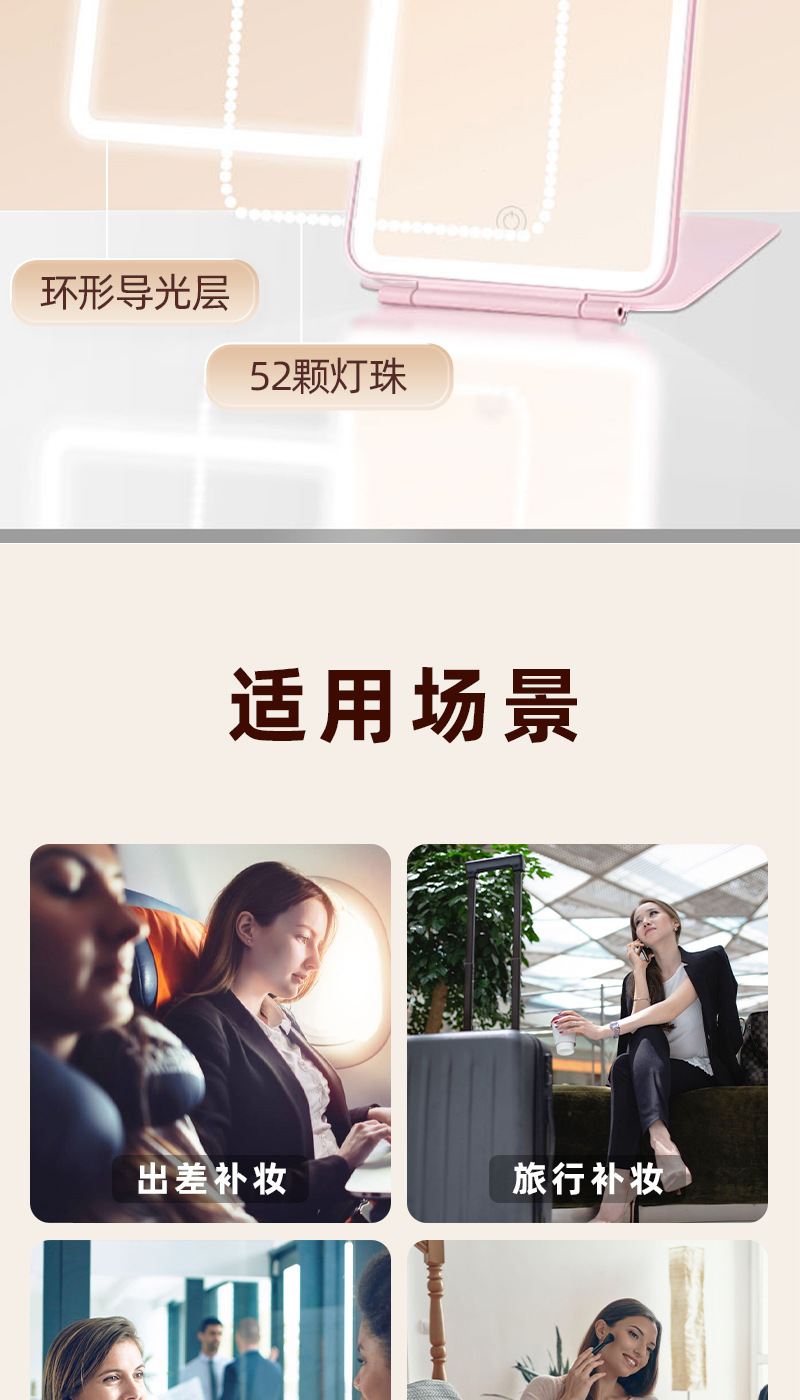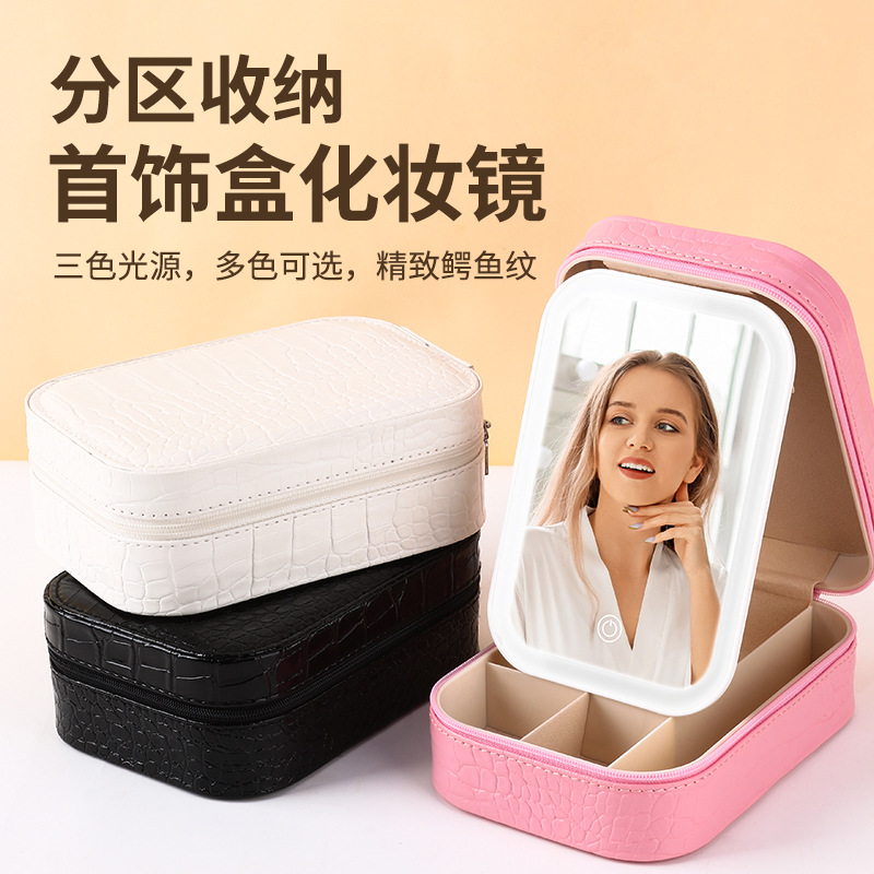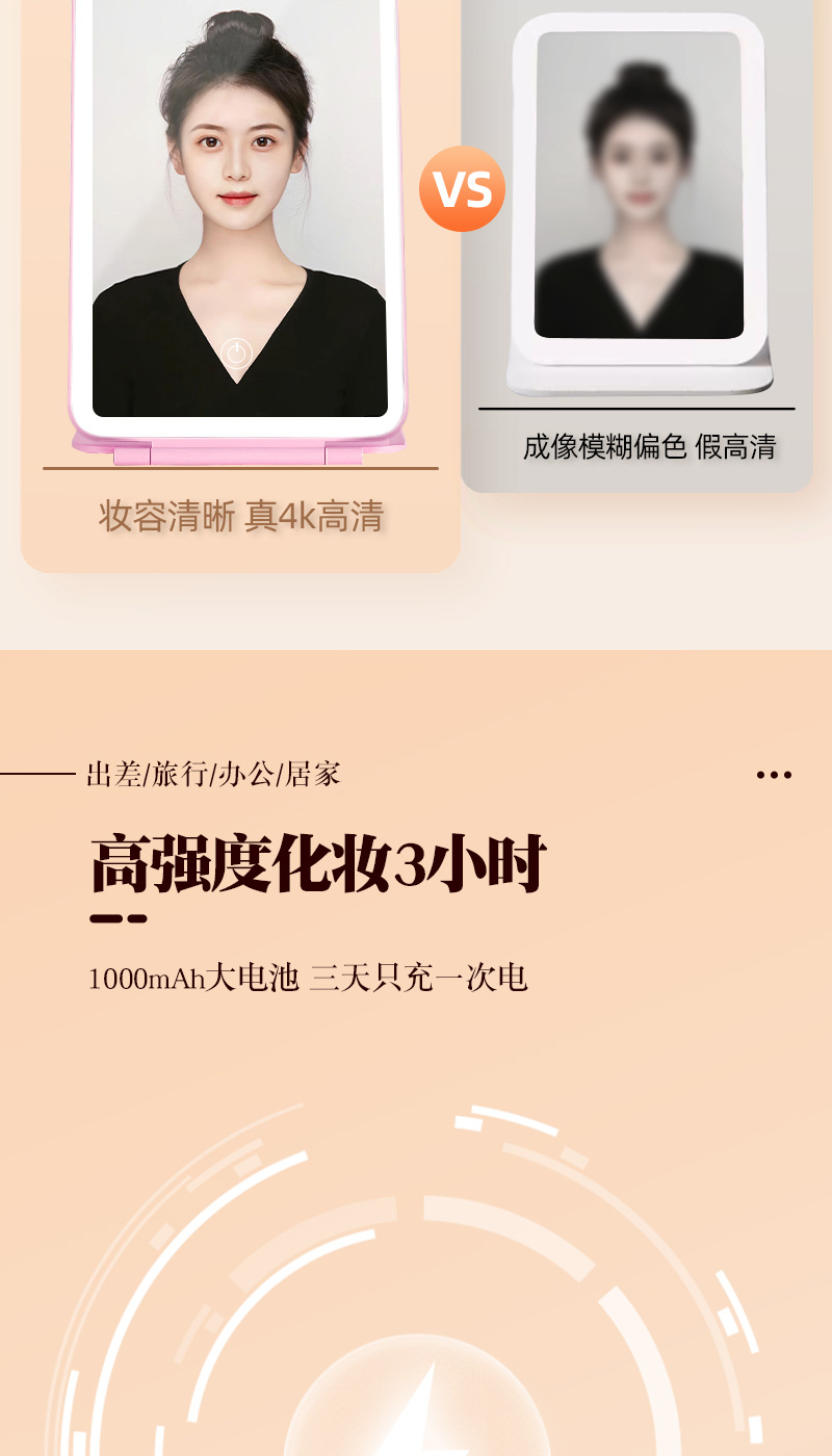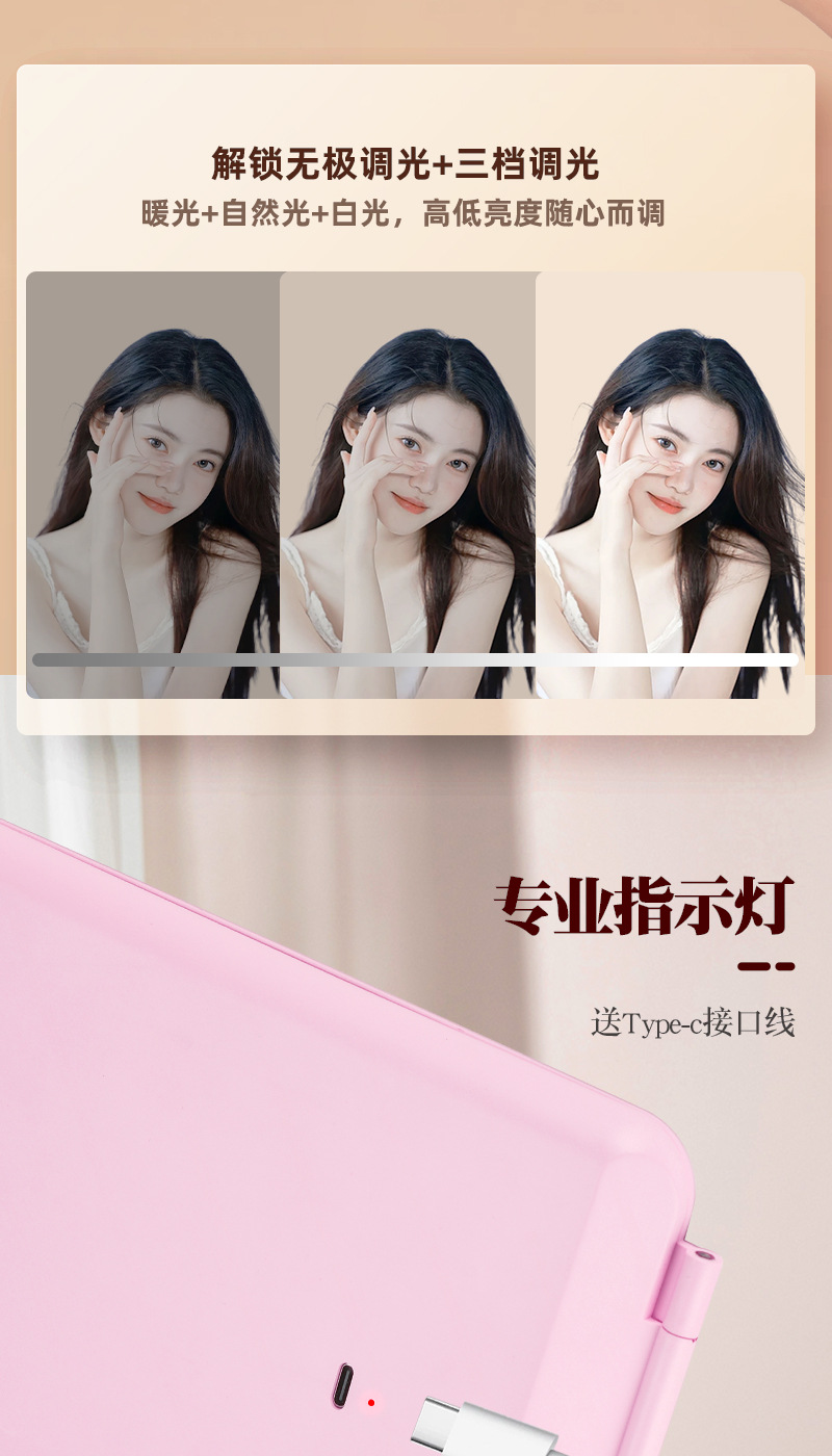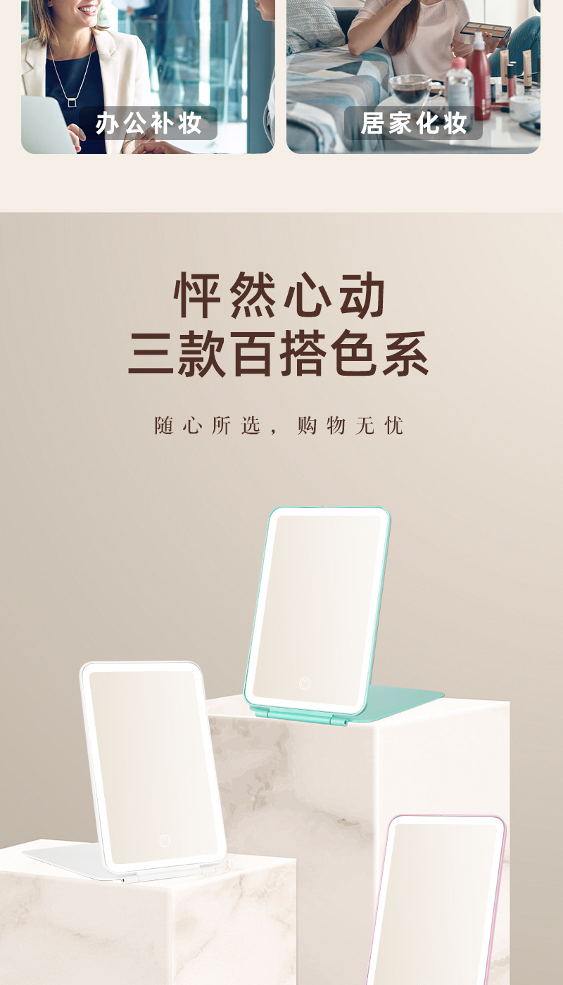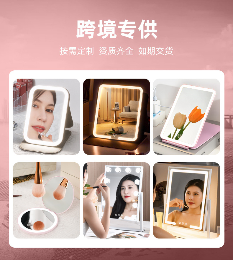 led化妆镜镜子三色光带灯旅行办公便携折叠礼物镜子梳妆台镜