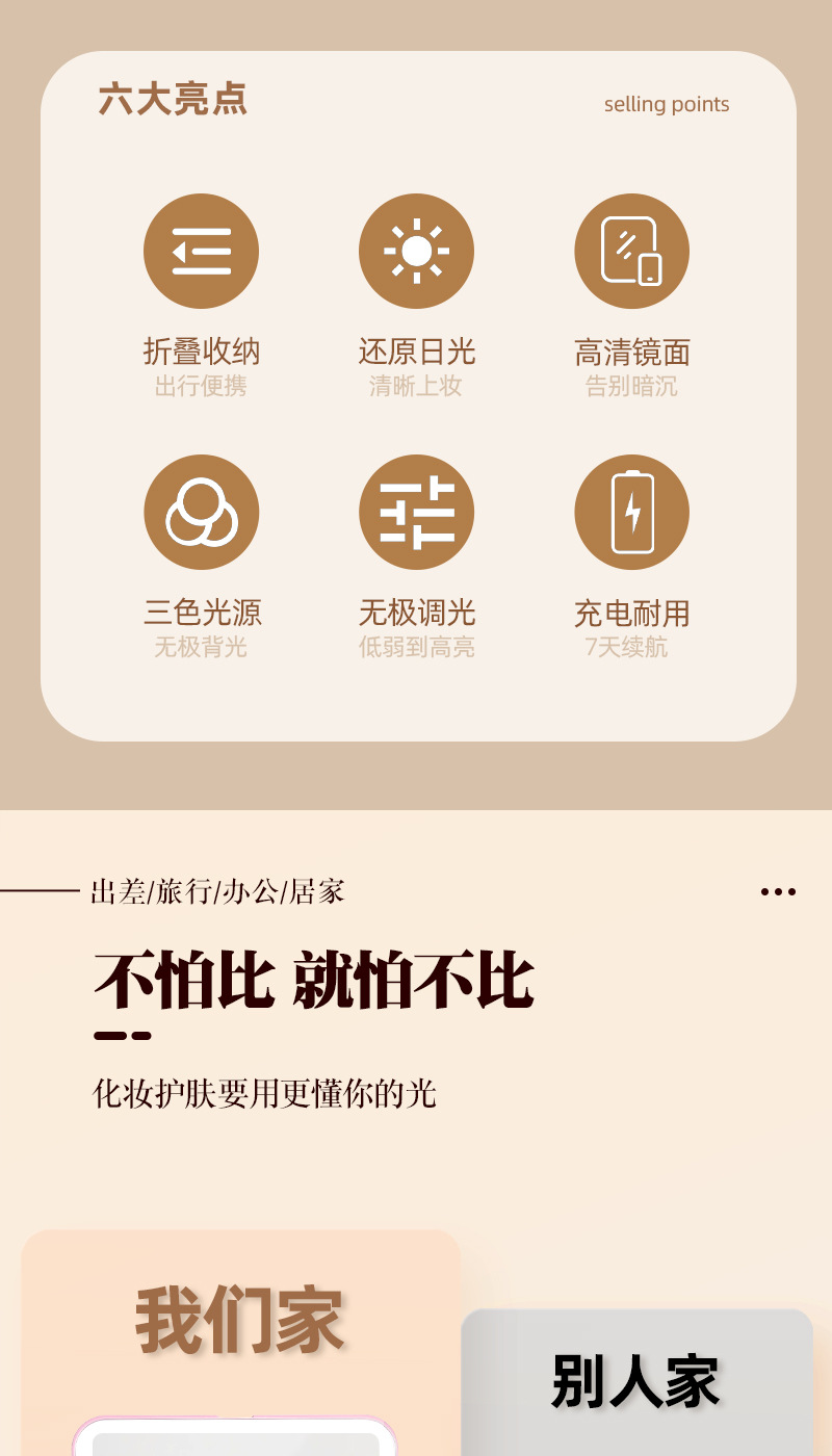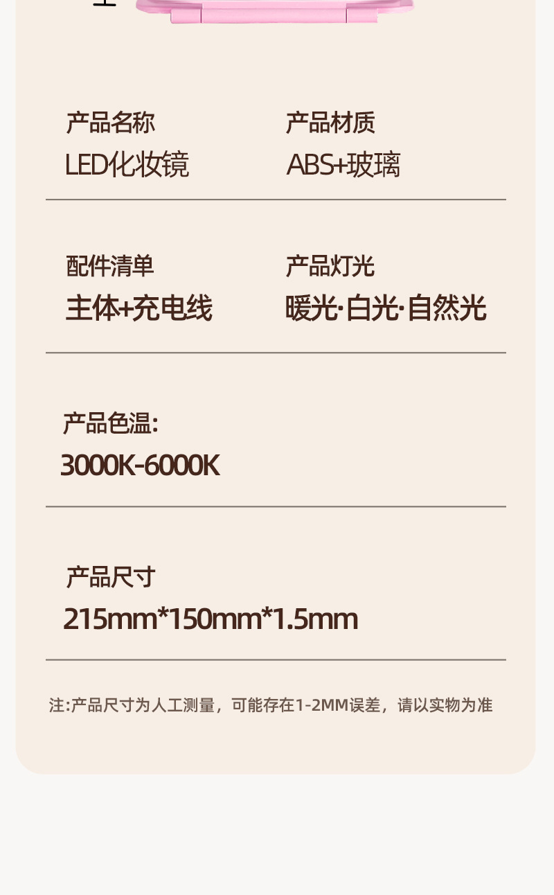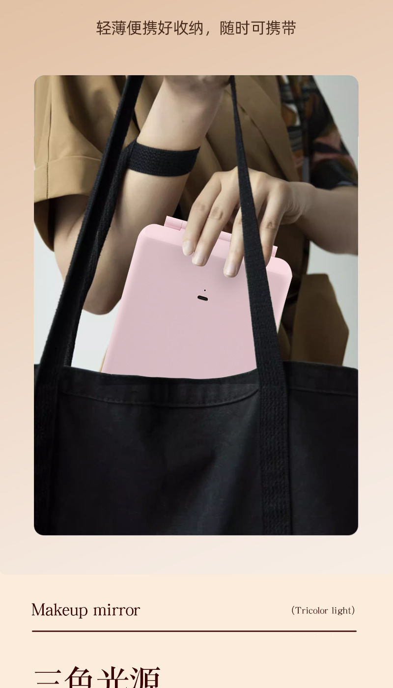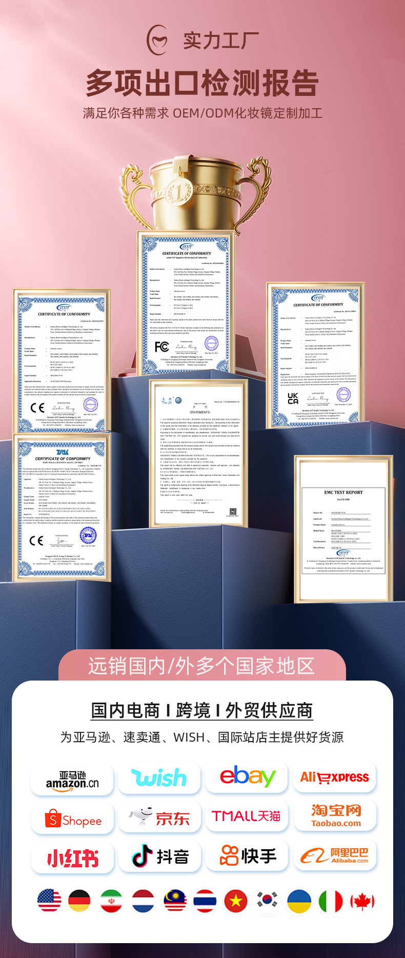 led化妆镜镜子三色光带灯旅行办公便携折叠礼物镜子梳妆台镜