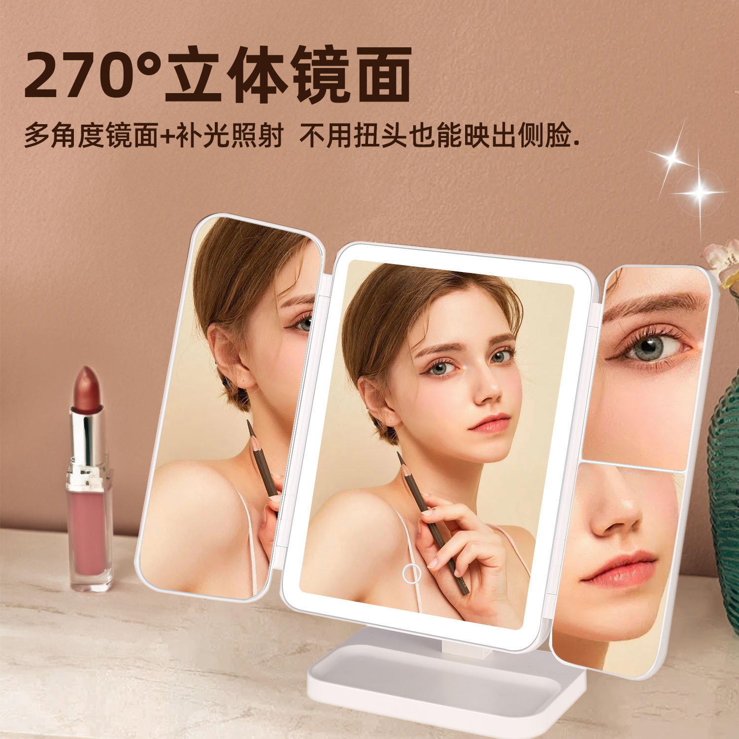 led化妆镜智能梳妆镜桌面台式三折叠美妆镜可移动可折叠镜子银镜