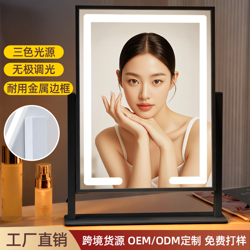 led化妆镜台式桌面浴室镜子带灯大号卧室镜网红美妆梳妆镜子批发