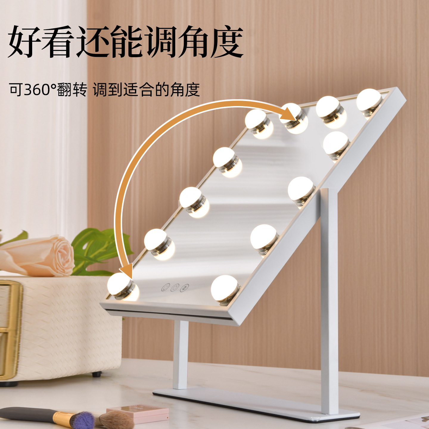 好莱坞led智能化妆镜带灯泡三色变光台面桌式梳妆镜浴室镜子插电