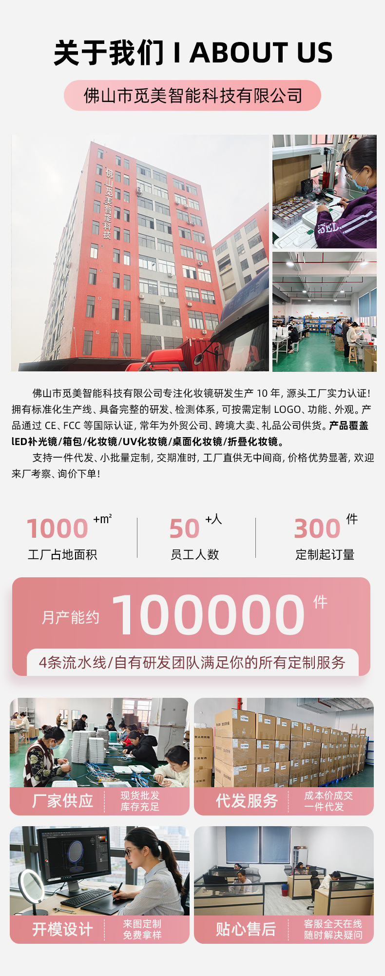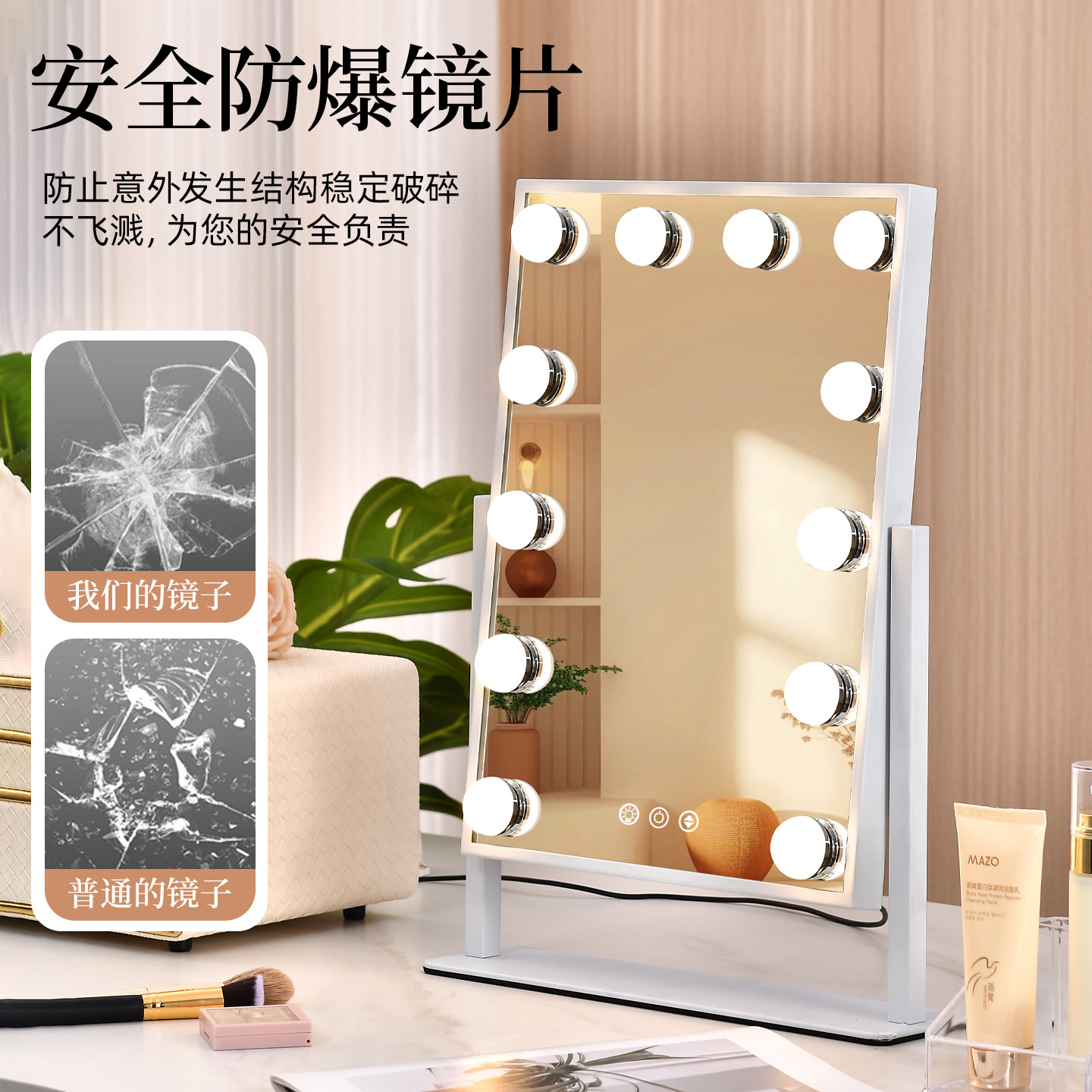 跨境化妆镜带灯好莱坞智能桌面台式梳妆镜化妆师专用补光超亮镜子
