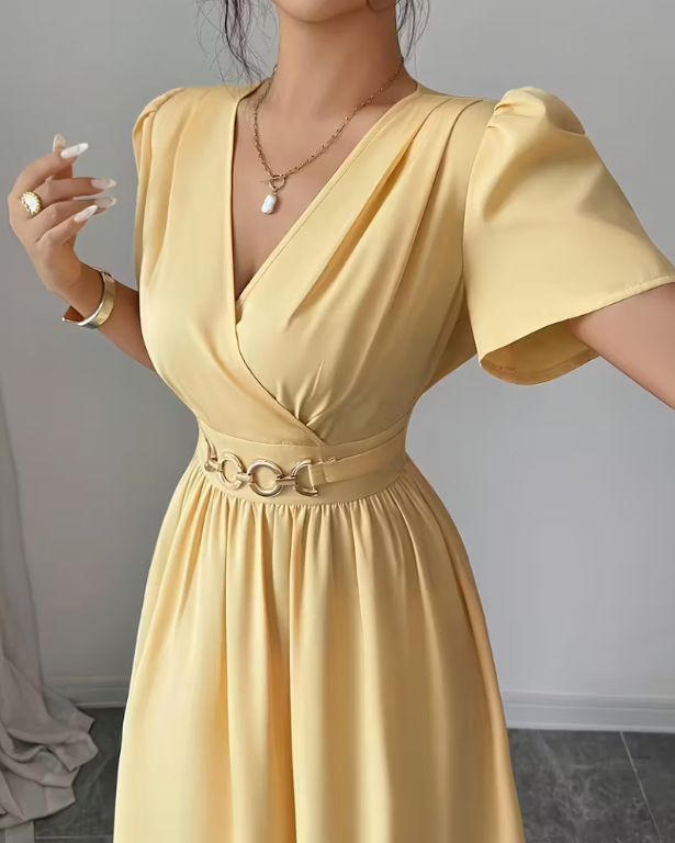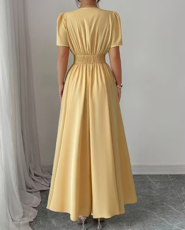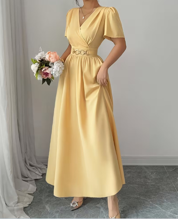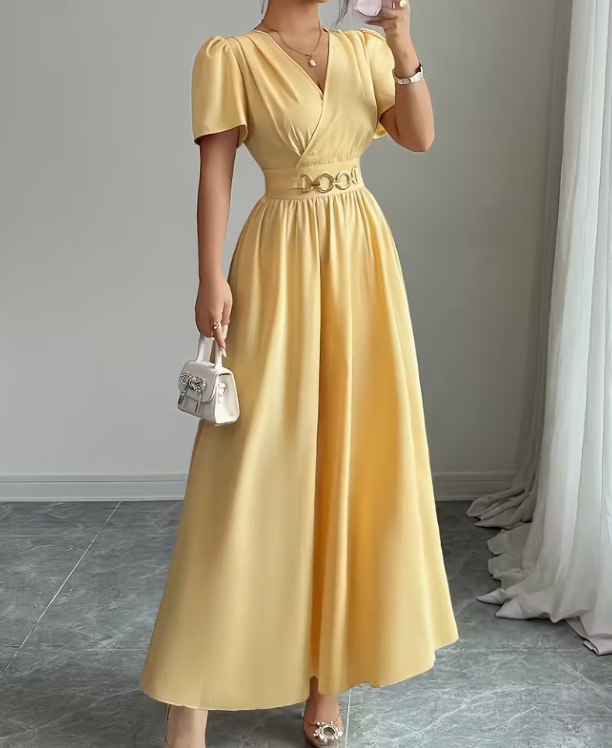 夏季新款v领收腰女装气质优雅显瘦连衣裙长裙