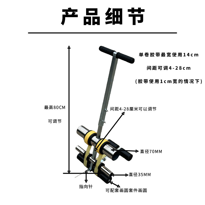 规格 加高加宽胶带划线机黑轮(不带画圆套件),加高加宽胶带划线机黑轮(配画圆套件0,加高加宽胶带划线机蓝轮耐磨型(不带画圆套件),加高加宽胶带划线机蓝轮耐磨型(配画圆套件),画圆套件