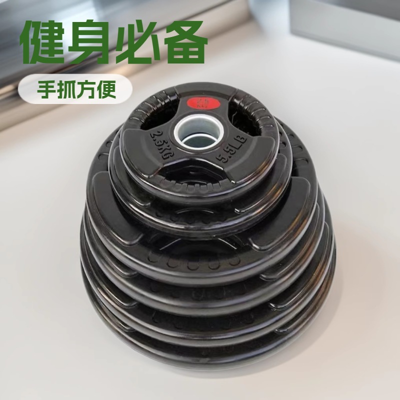 オリンピック重量挙げ用三穴ラバーコーティングバーベルプレート、大穴競技用オリンピックプレート、ハンドグリップ競技用フィットネス