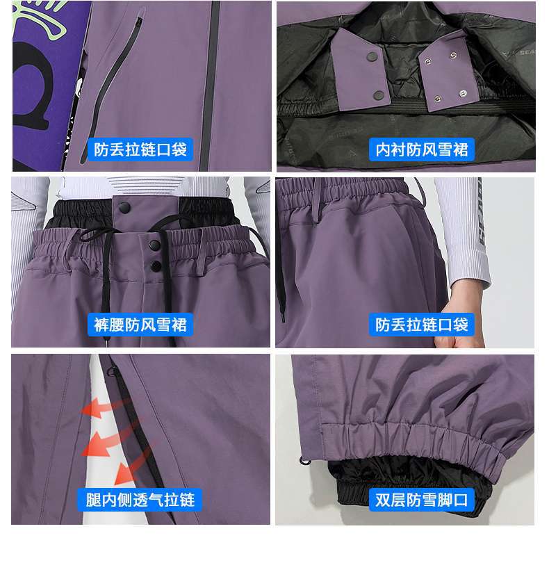 アメリカンスキーウェア男性と女性のためのベルベット暖かいバイオレット防風防水アウトドアスキーウェアサウスリトルポテト