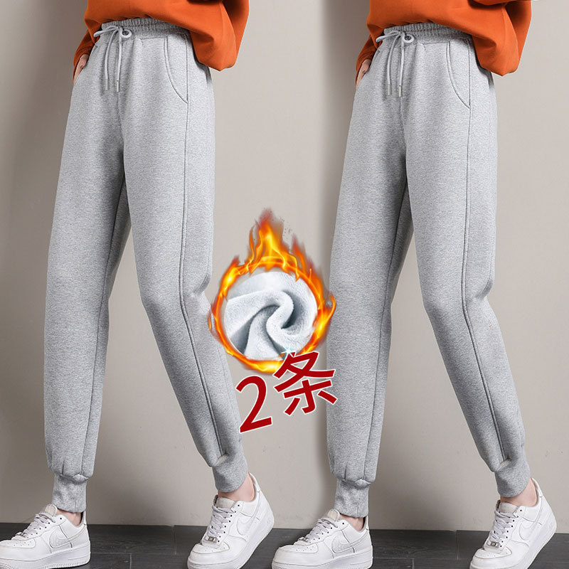 秋冬にベルベットをつけてスポーツパンツを厚くした女性韓国版のゆったりとした足のハーレムパンツ2024年春の灰色のカジュアルパンツ