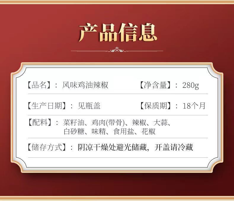 包装规格 风味鸡油油辣椒280g,风味豆豉油辣椒280g,风味水豆豉210g,风味鸡油油辣椒280g*24瓶整箱,风味豆豉油辣椒280g*24瓶整箱,风味水豆豉210g*24瓶整箱,老干妈油辣椒275g,老干妈油辣椒275g*24瓶整箱