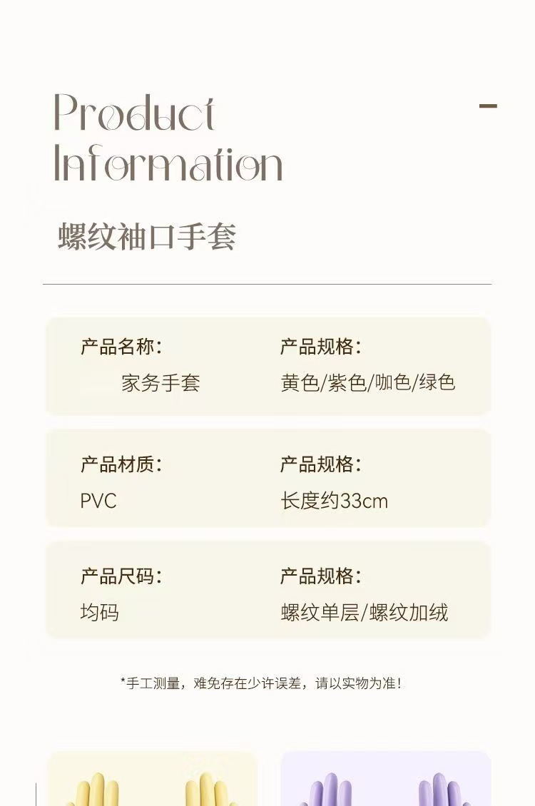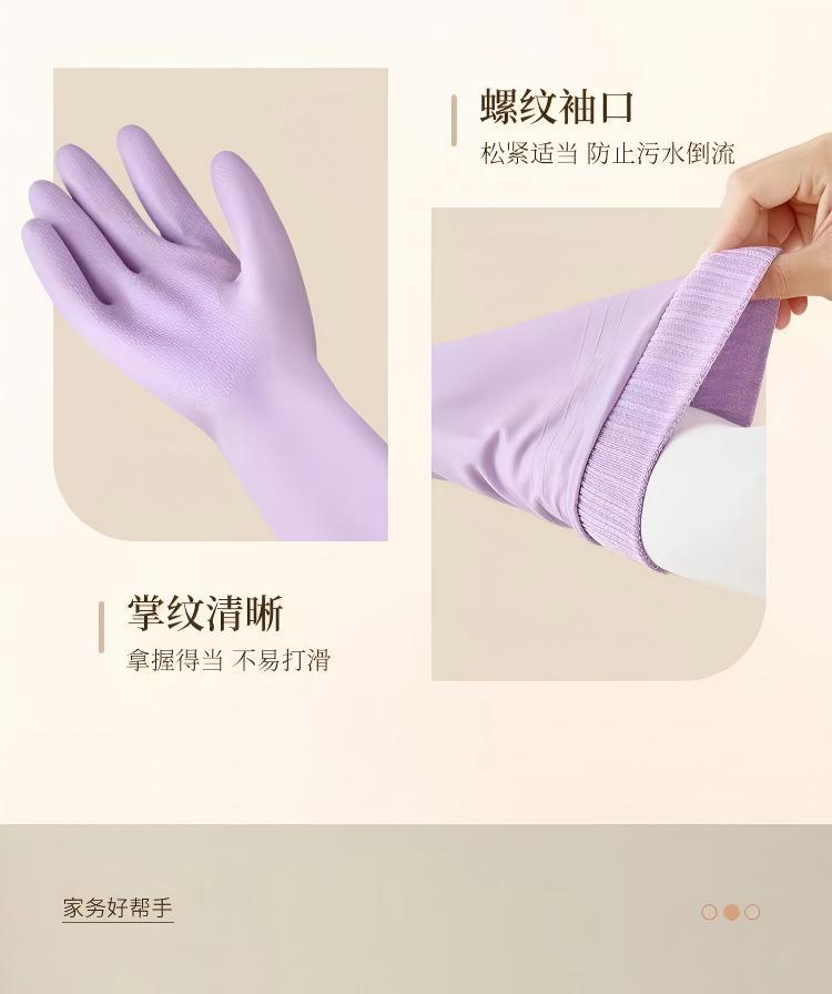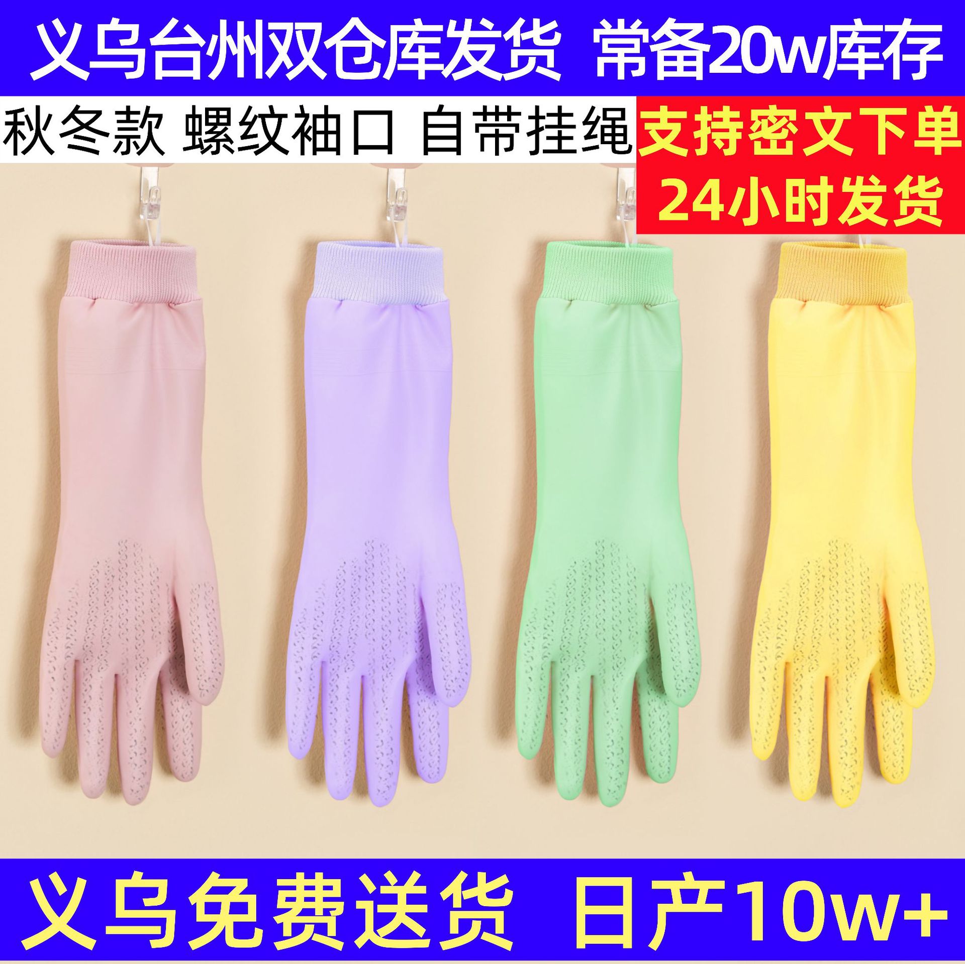 家务螺纹口手套加绒洗碗手套家用清洁手套冬季加厚耐用家务