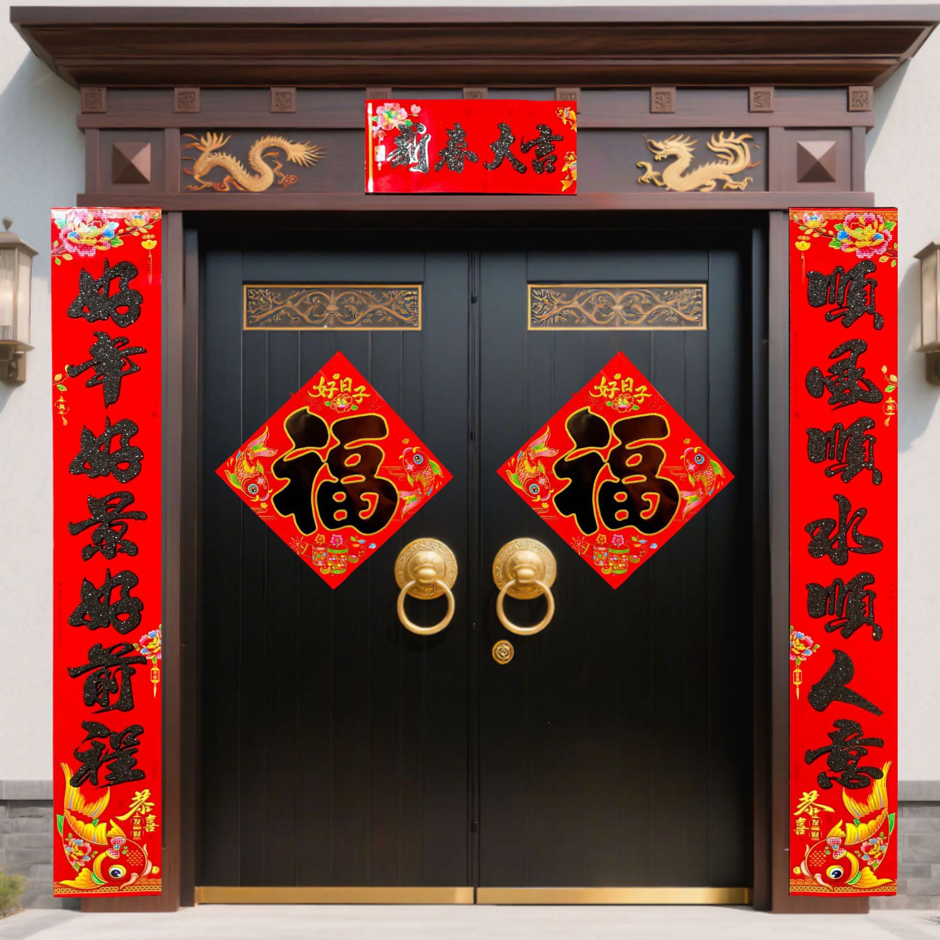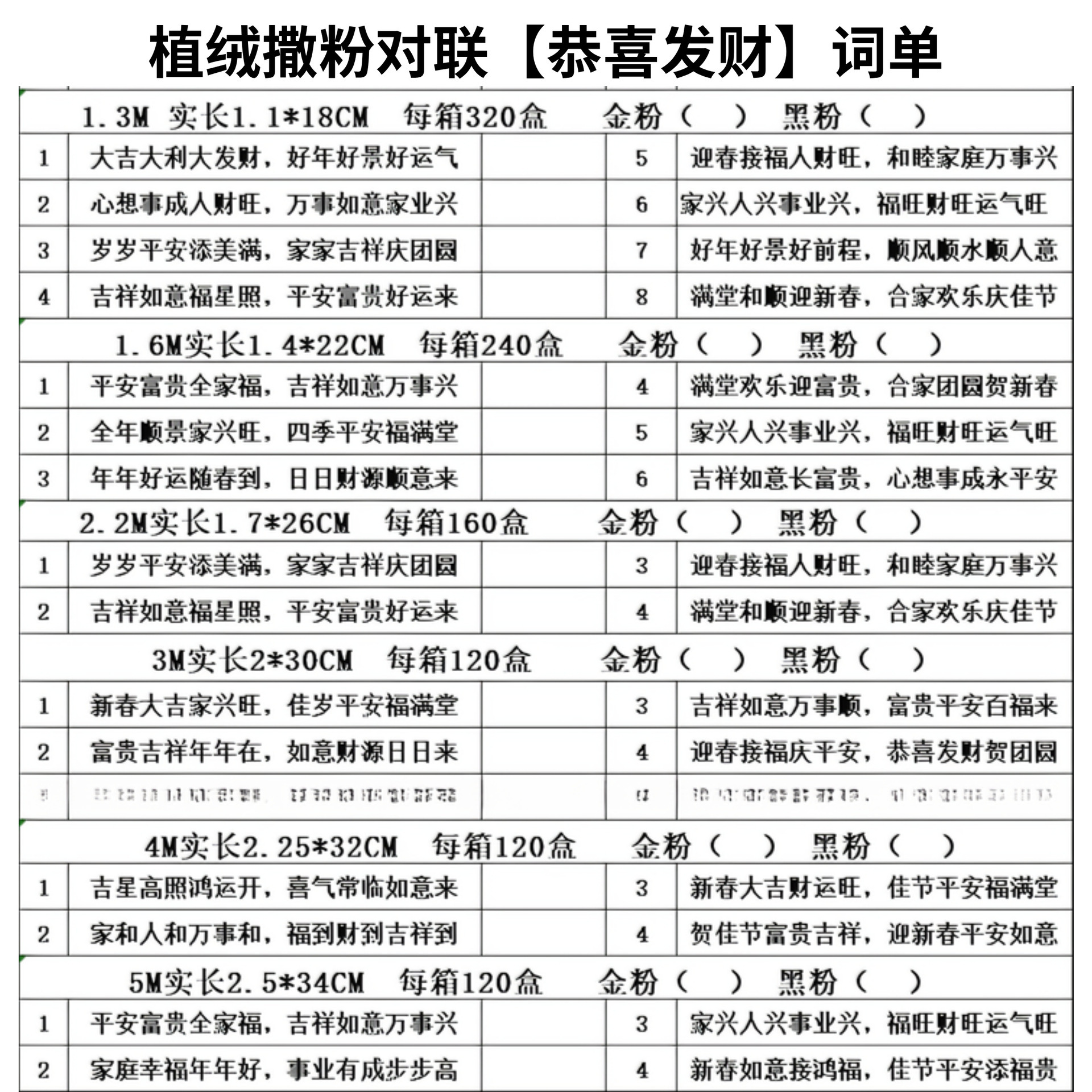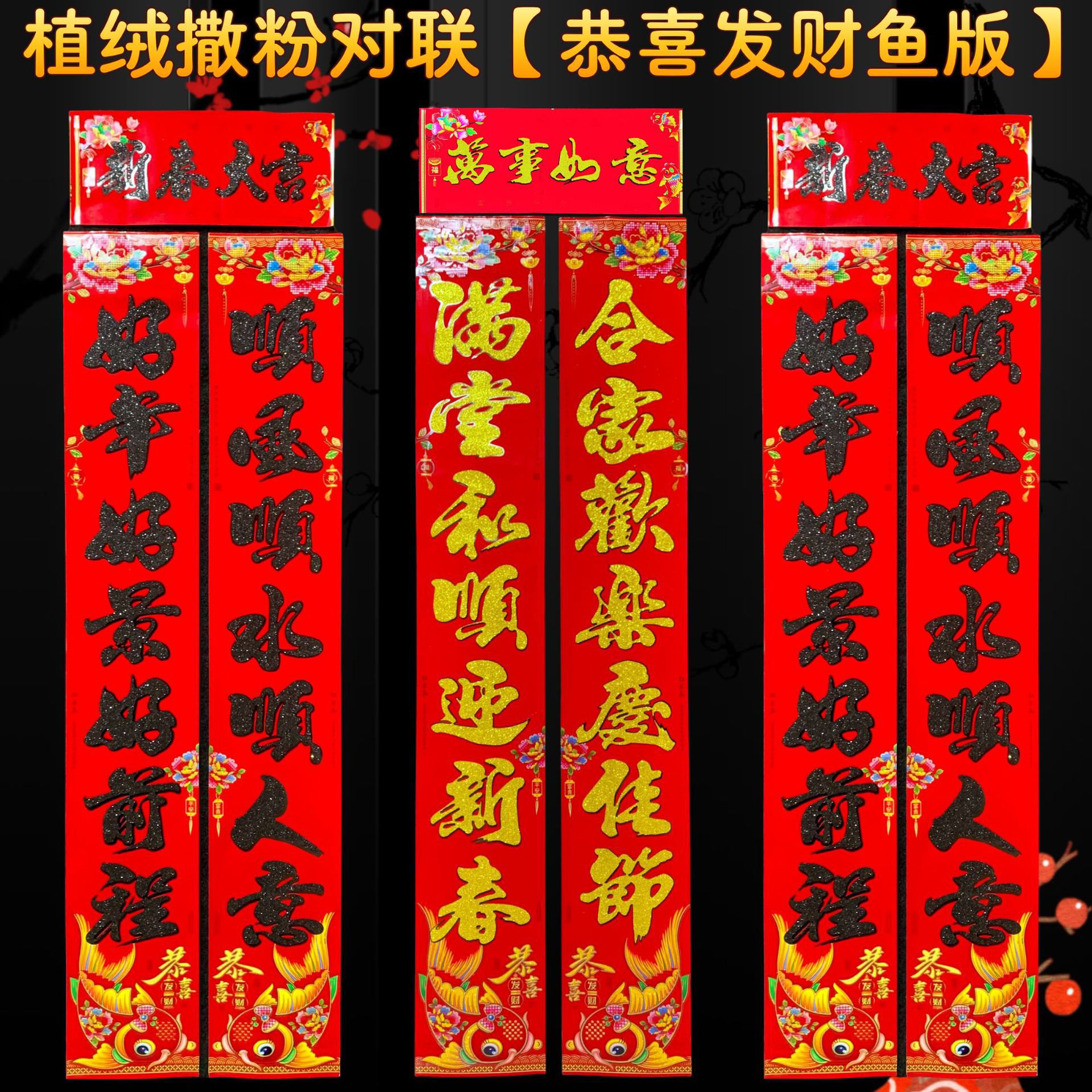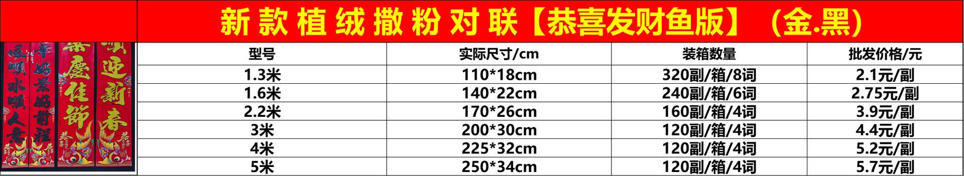 纸植绒撒粉对联~恭喜发财鱼版,家庭词1.3米到5米金粉黑粉通版…详情词汇尺寸详情请看照片……