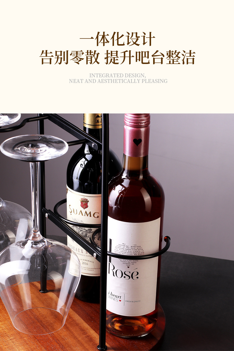 进口橡胶木红酒杯醒酒器一体架倒挂高脚杯展示置物架酒杯架收纳