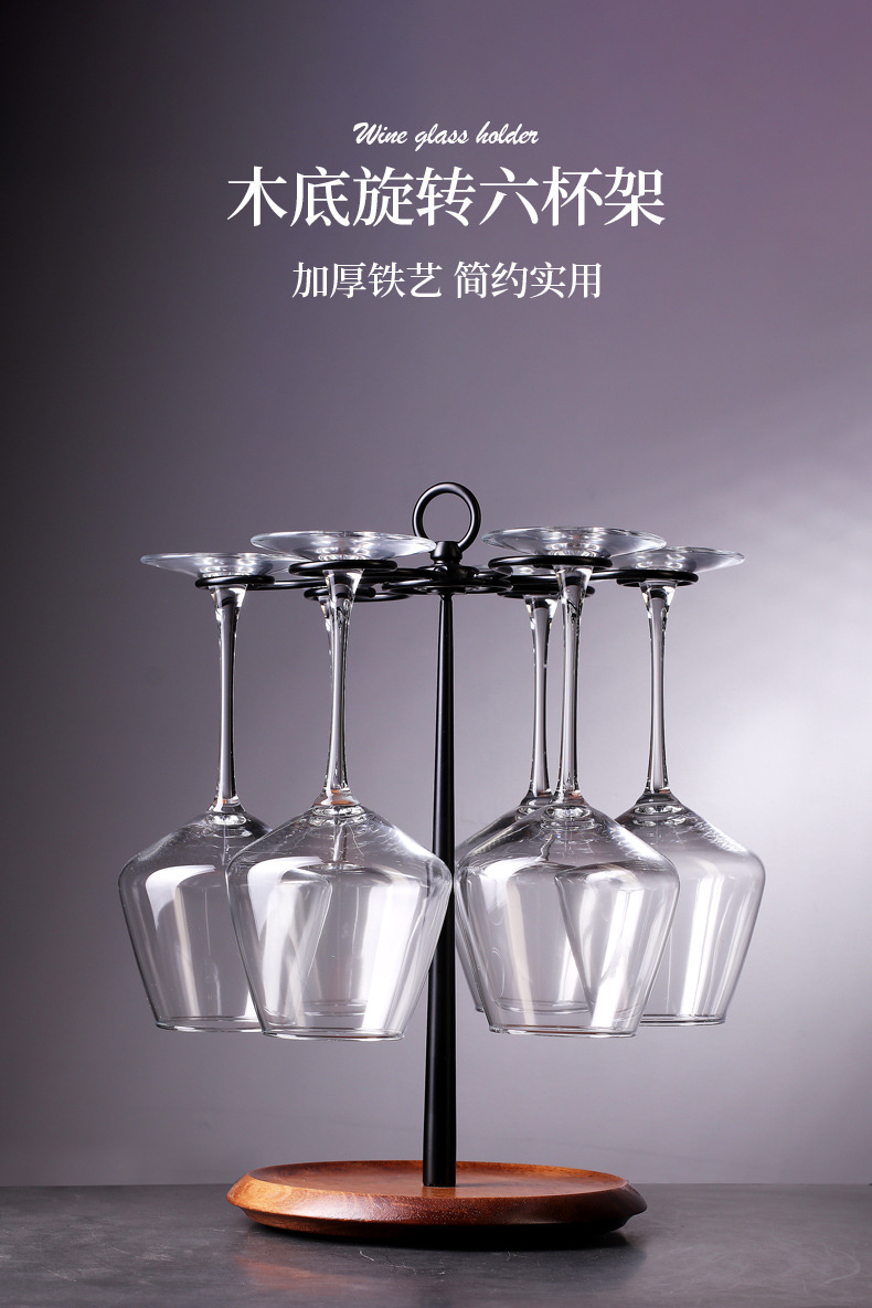 实木旋转红酒杯架创意高档高脚架子吊倒悬挂酒柜展示收纳家用摆件