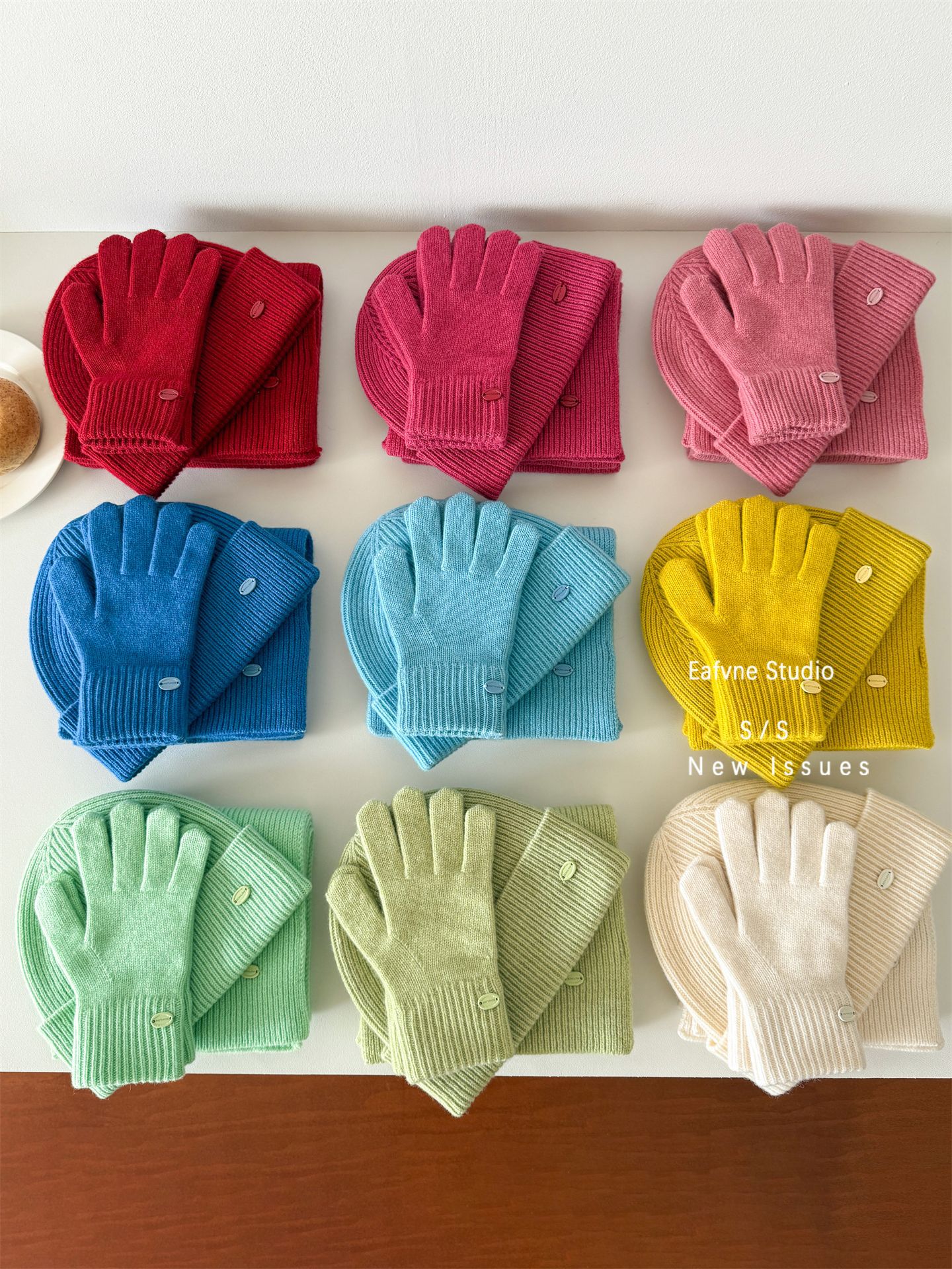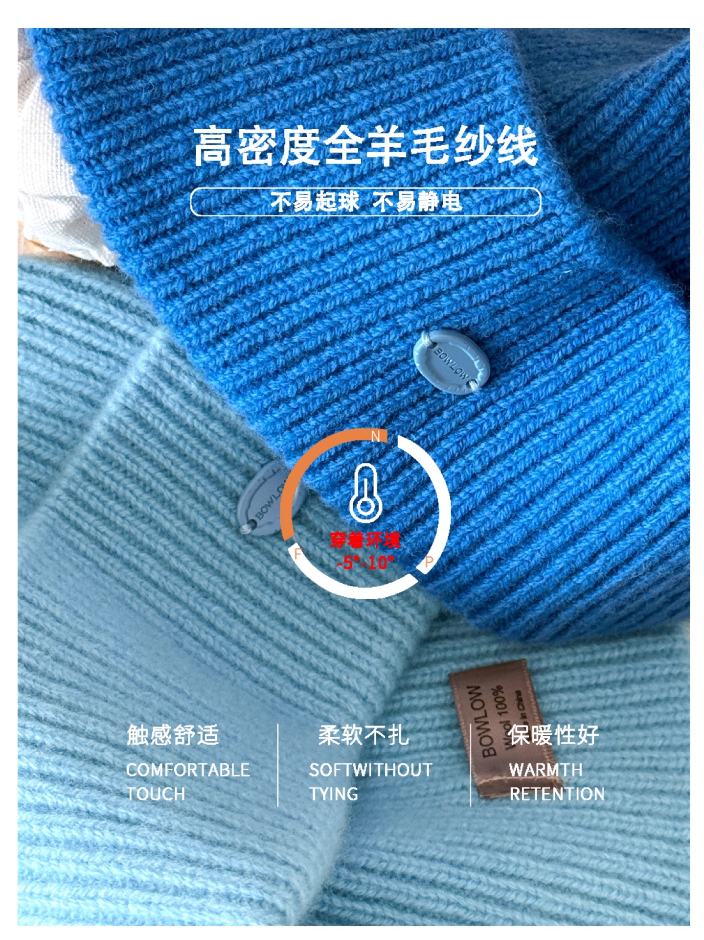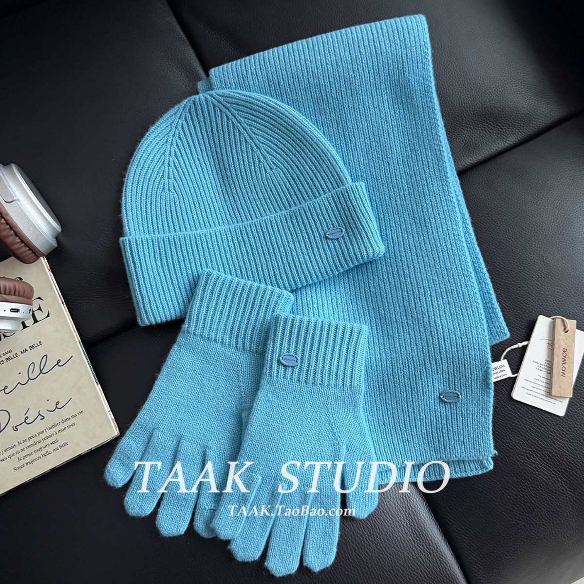 高品质2025新款100%纯羊毛高品质氛围感初恋蓝纯羊毛围巾帽子手套