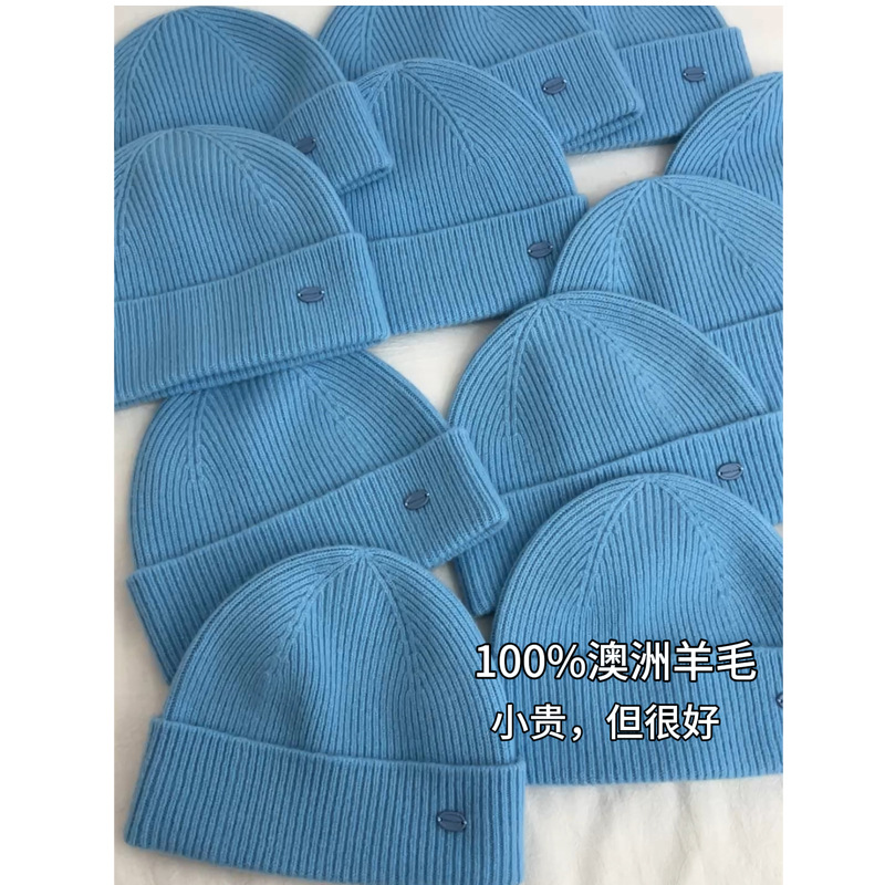 出口原单高品质100%绵羊毛帽子女秋冬保暖冷帽针织帽大头围显脸小
