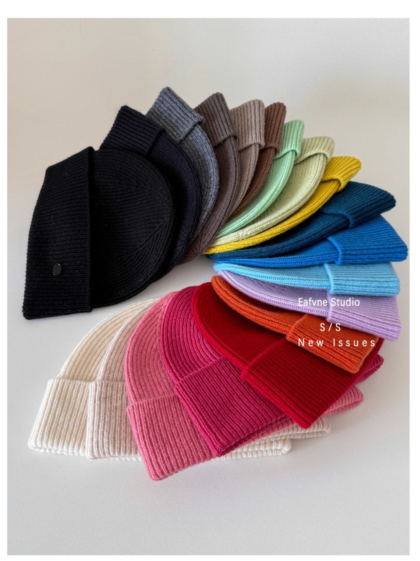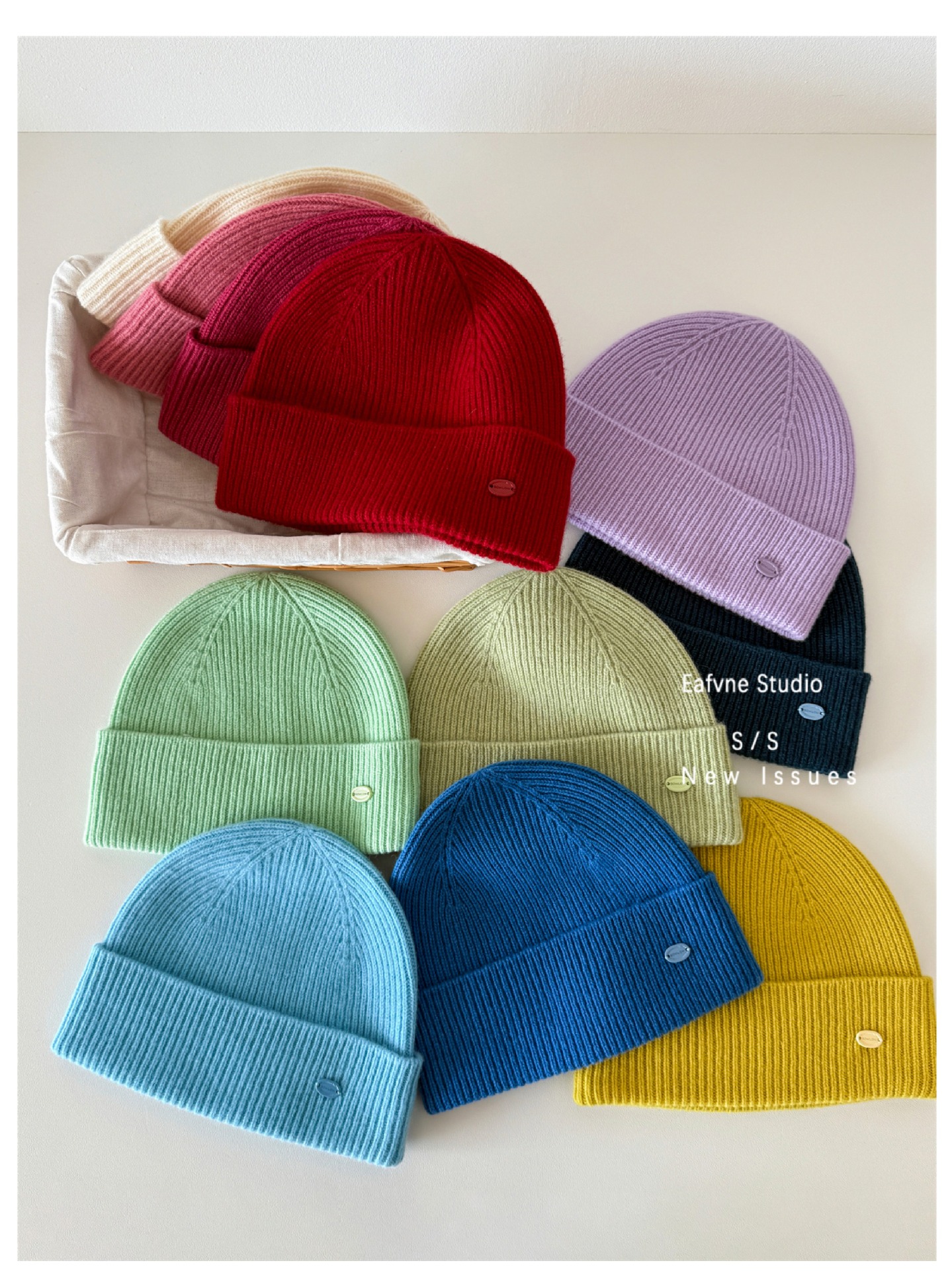 韩国原单高版本100%绵羊毛帽子女秋冬保暖冷帽针织帽大头围显脸小