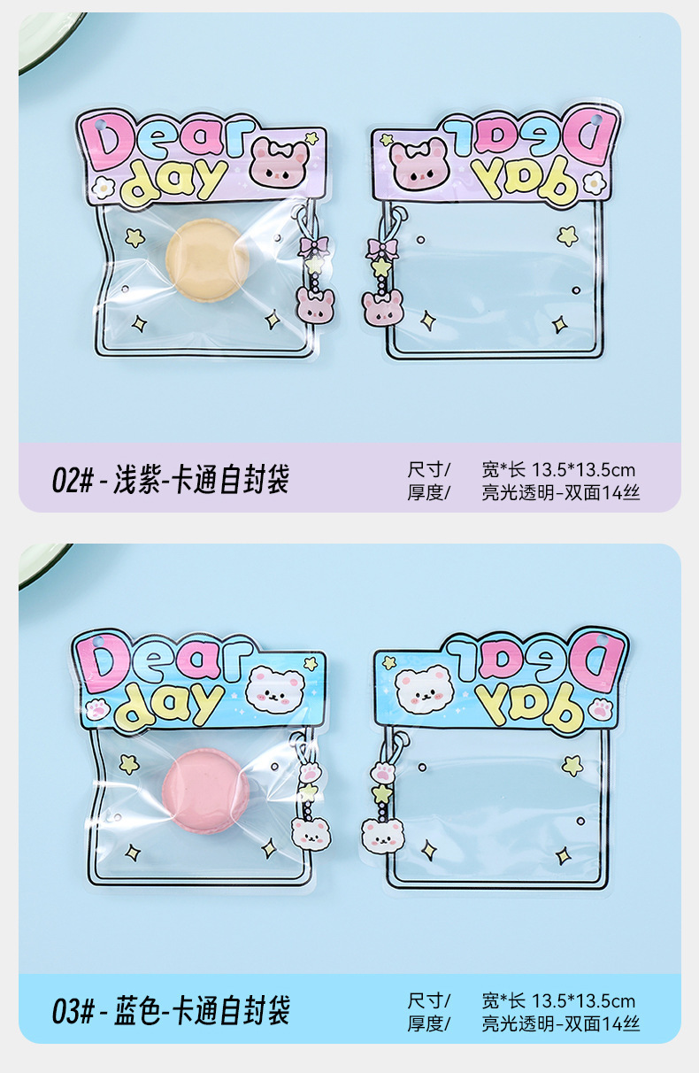 漫画三面シールキャンディスナックセルフシール包装袋ゴムバンドヘアピンジュエリー収納かわいいクマシールポケット