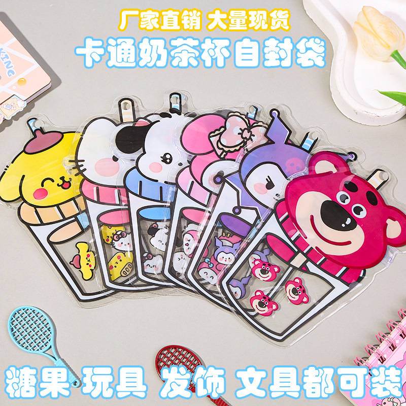 サンリオ漫画ミルクティーカップジップロックバッグ幼稚園スナックキャンディ包装収納小さなギフト包装袋密封