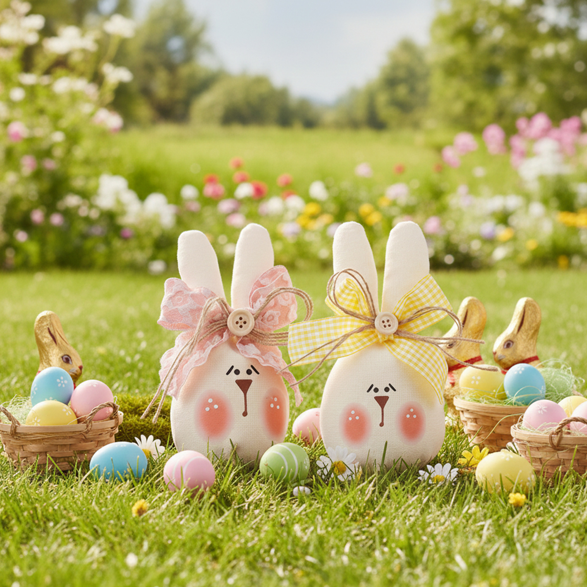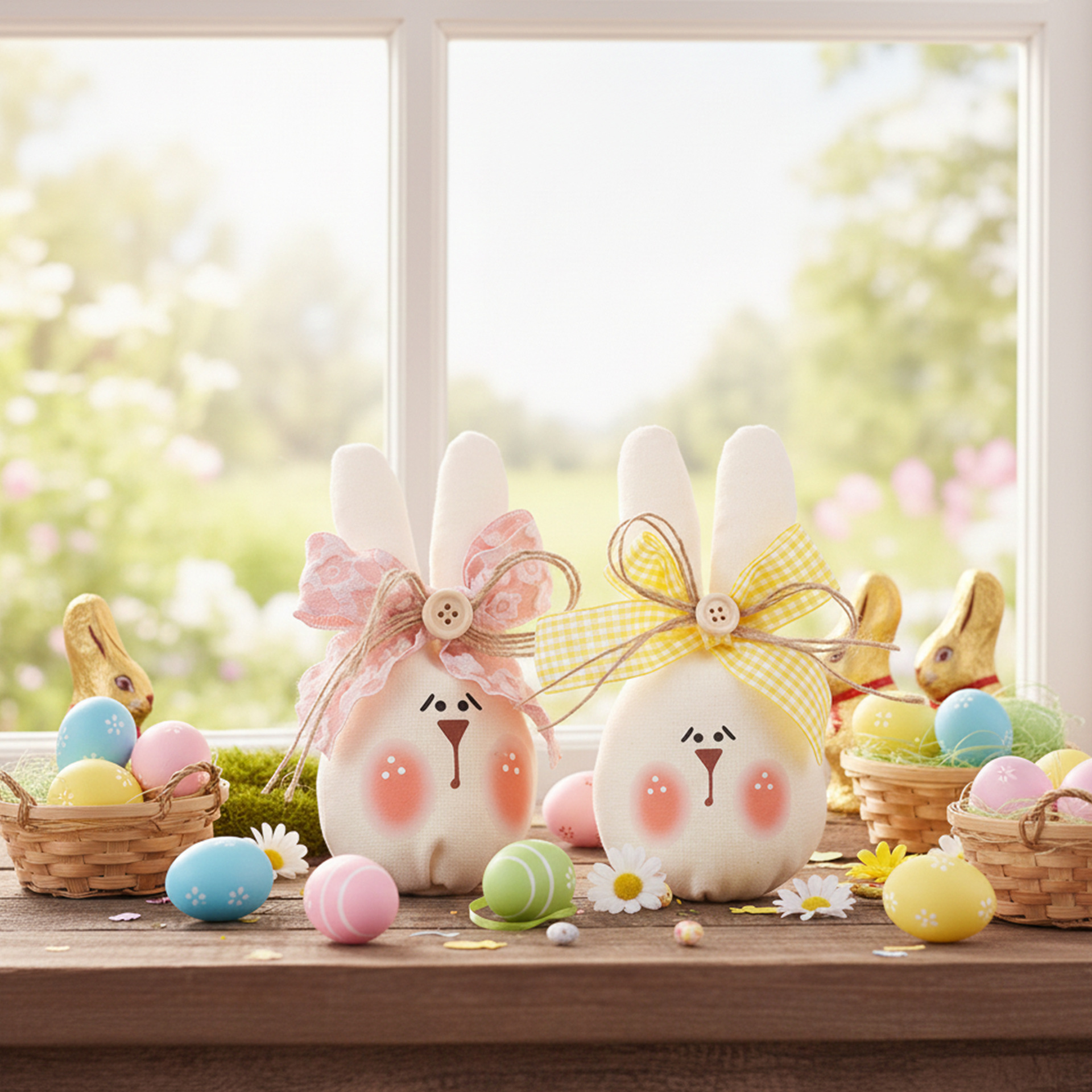 跨境亚马逊新品复活节布艺充棉兔子装饰摆桌面件 easter spring派对装饰品托盘装饰品