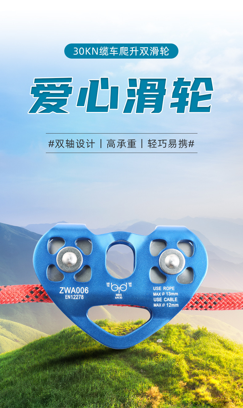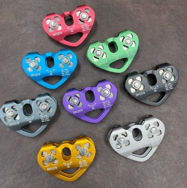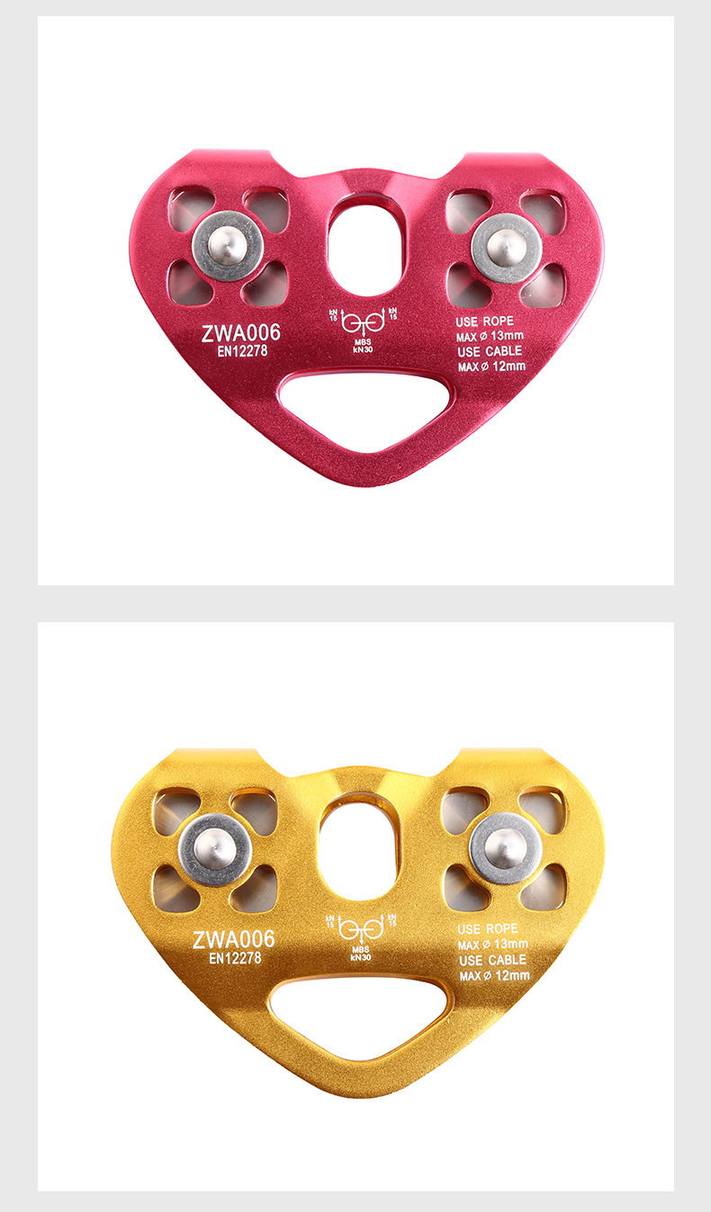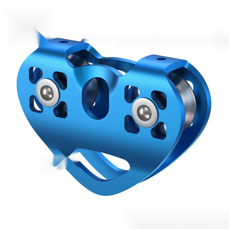 铝合金双轴双滑轮登山攀岩滑轮横渡探险救援高空绳索道爱心双滑轮