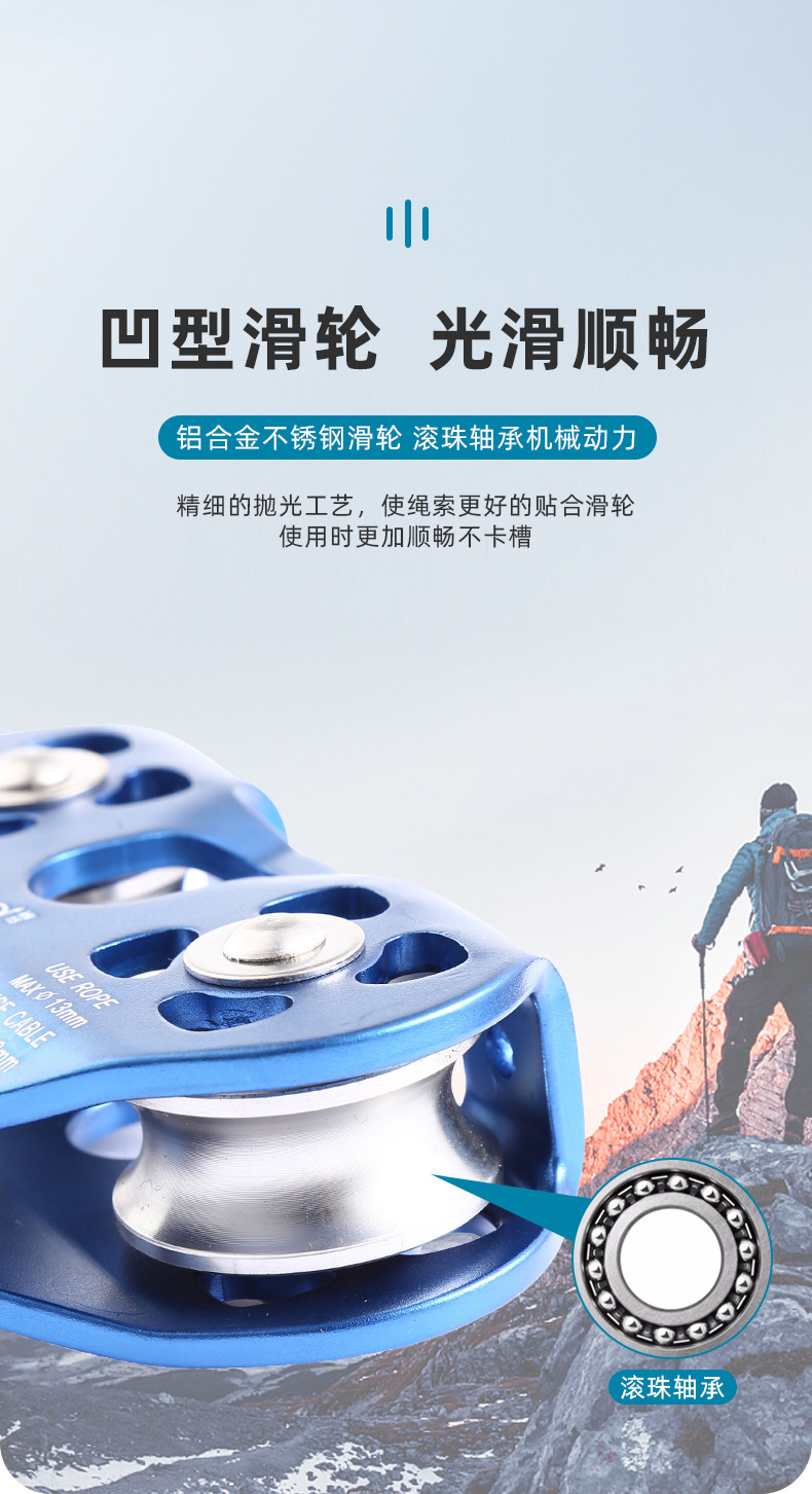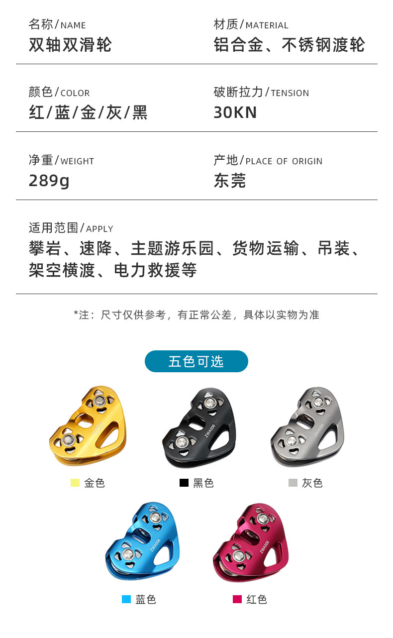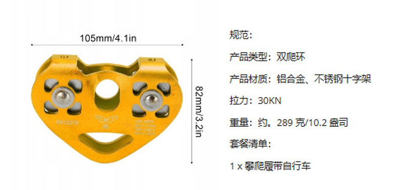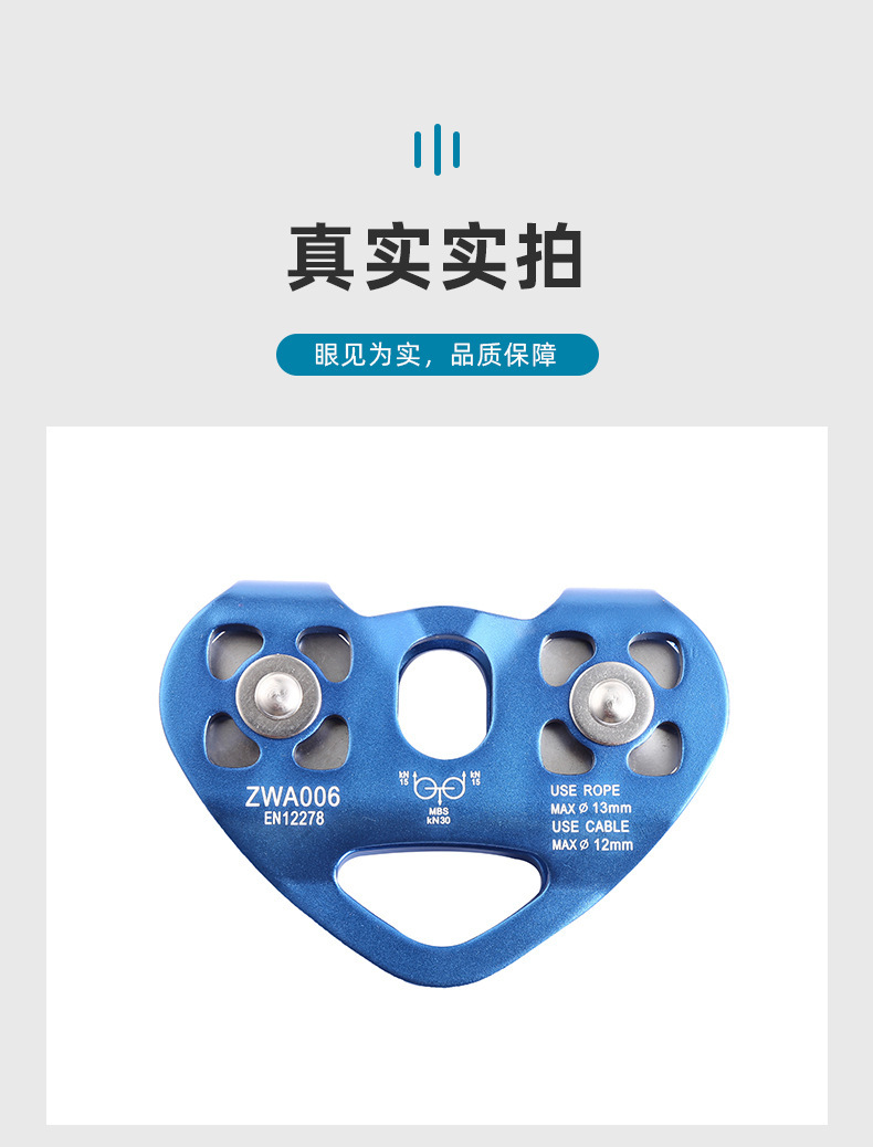 铝合金双轴双滑轮登山攀岩滑轮横渡探险救援高空绳索道爱心双滑轮