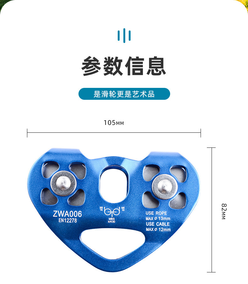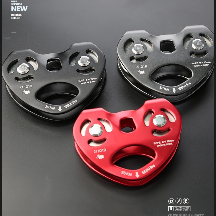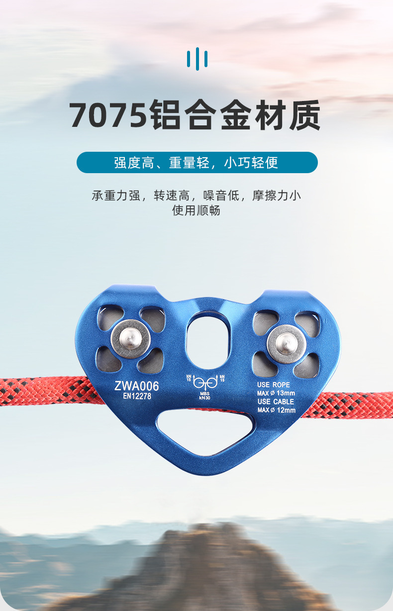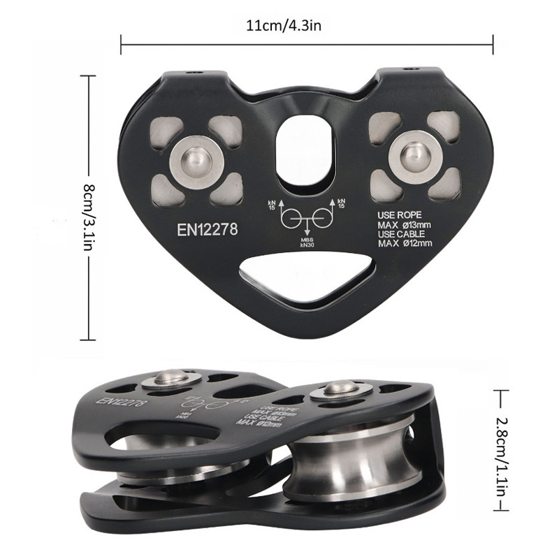 户外攀岩吊装运输登山滑轮心形双滑轮钢缆溜索索道滑轮组批发代发
