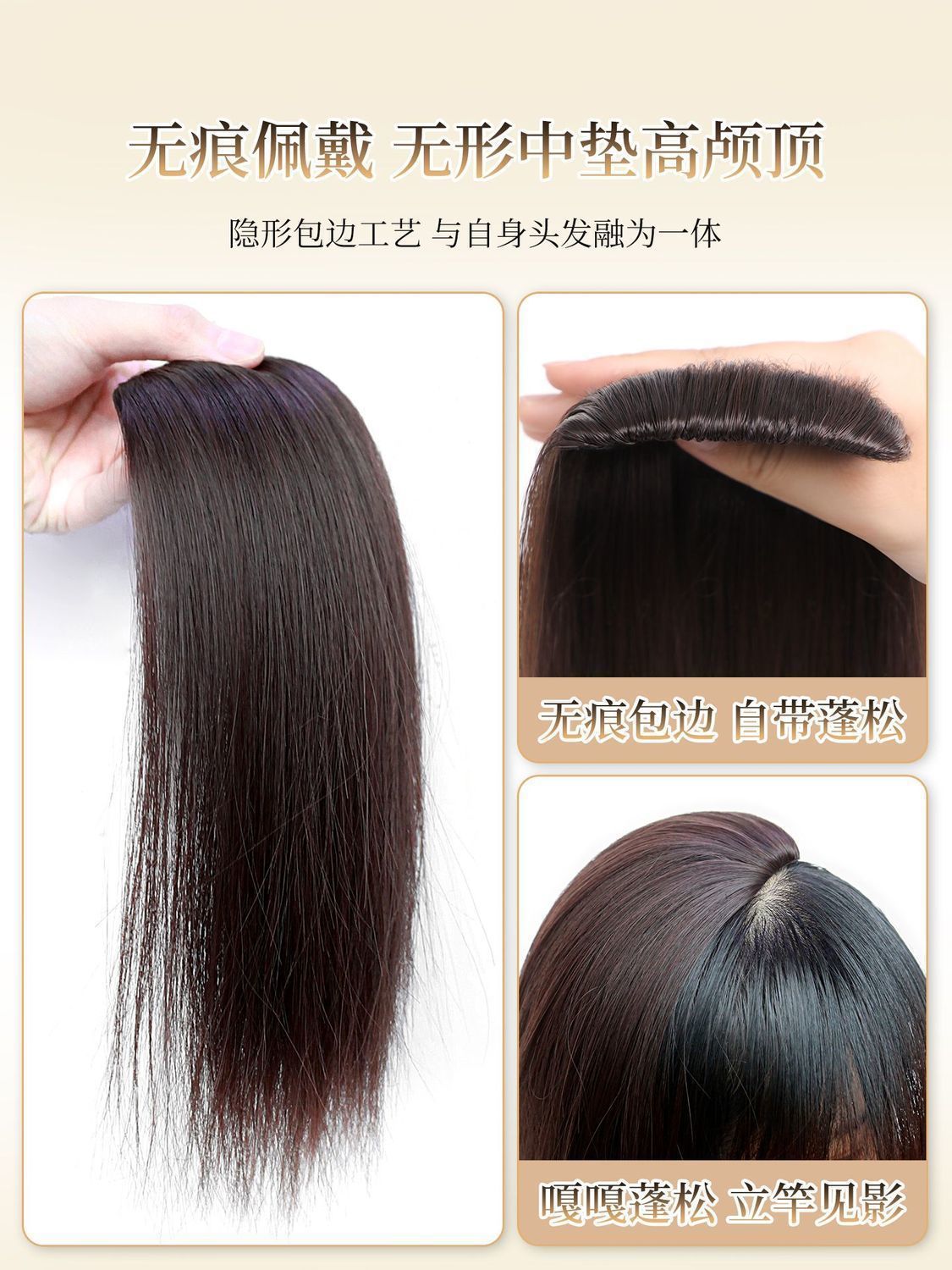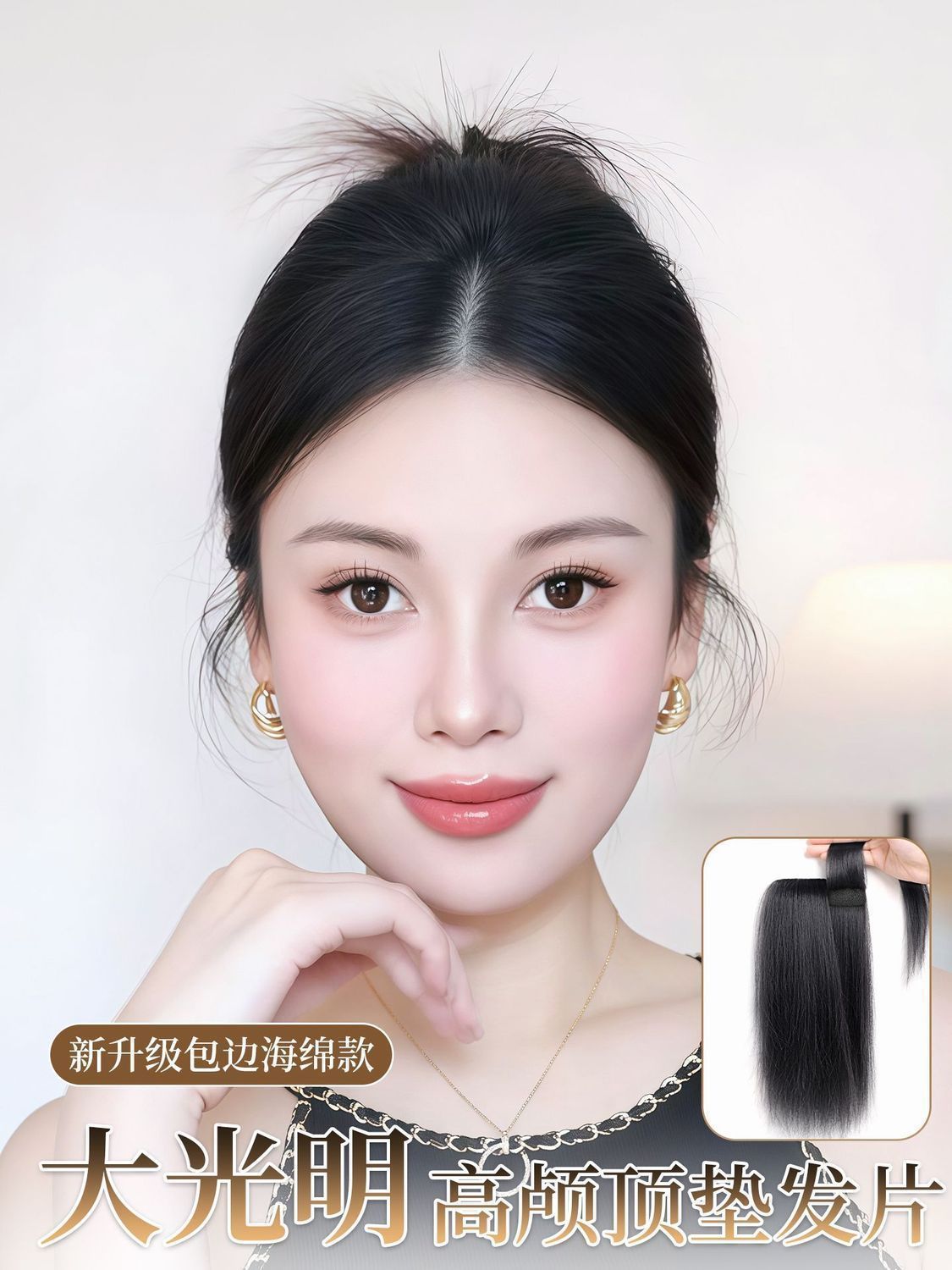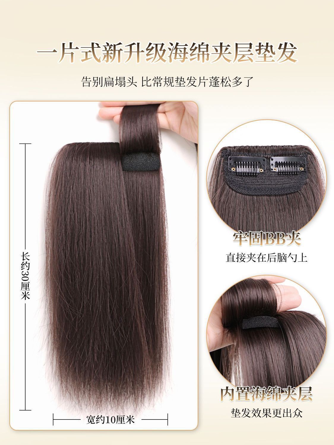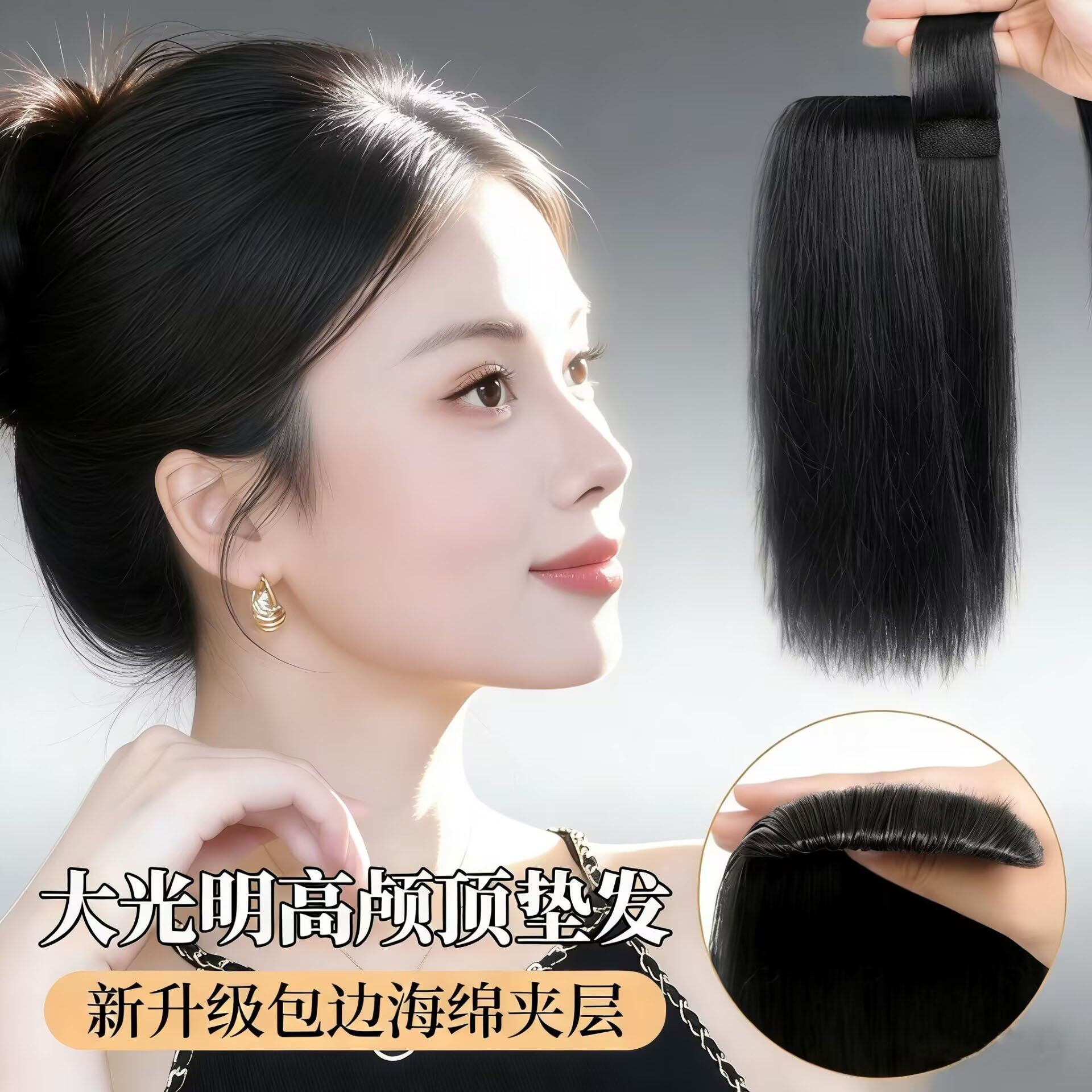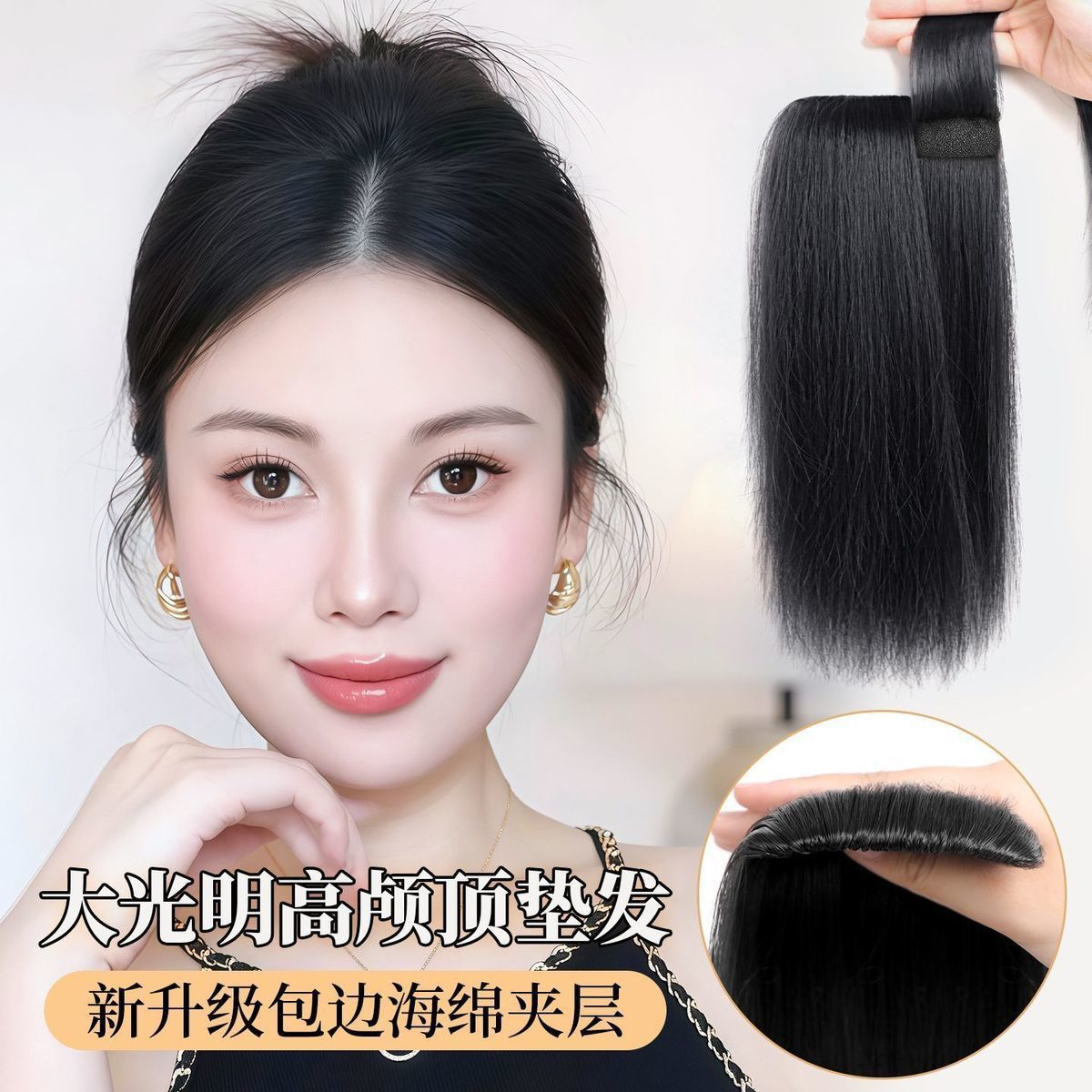 海绵夹层垫发片假发增发量蓬松高颅顶大光明垫发片无痕头顶补发片