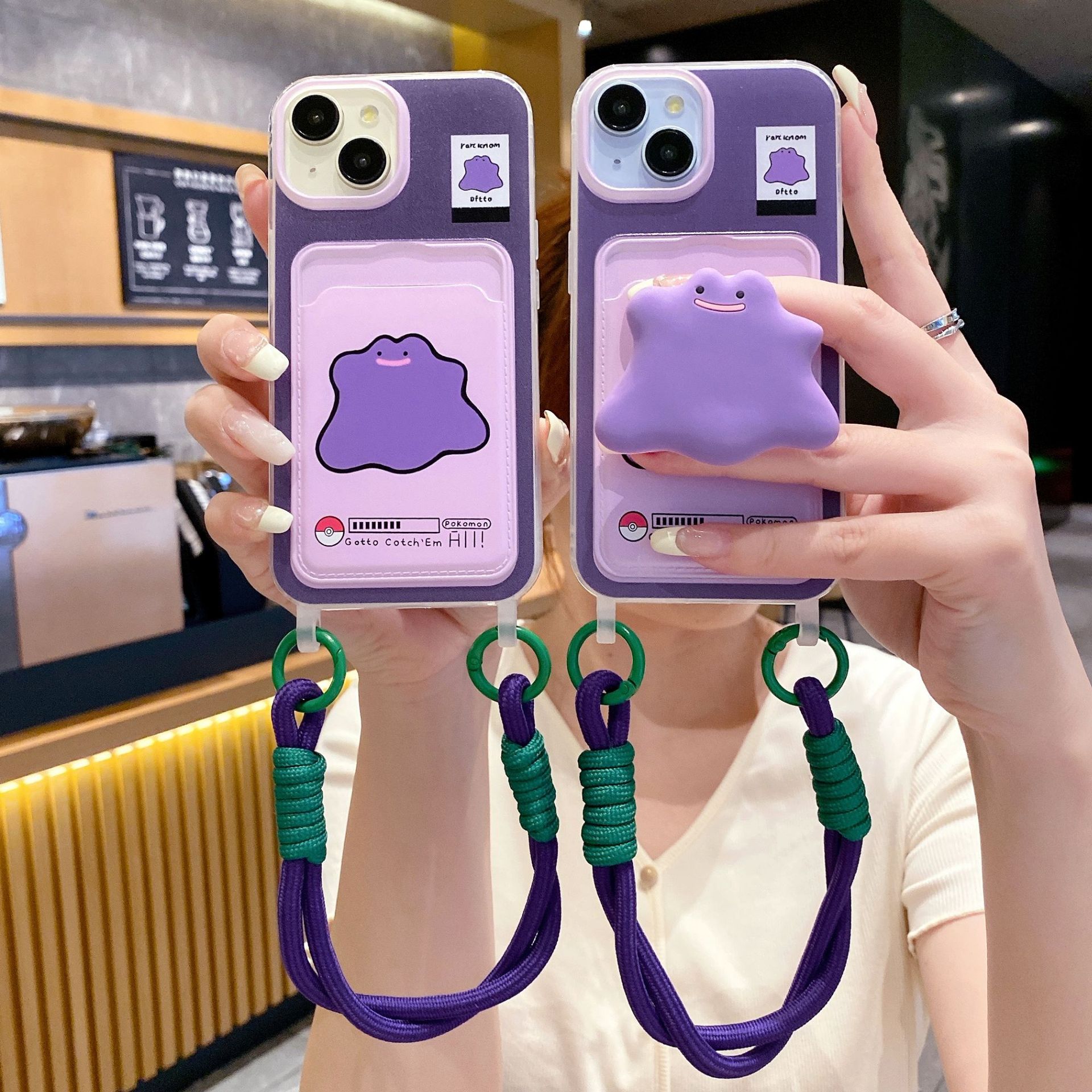 クリエイティブカードバッグストラップ適用アップル16PROかわいい紫色怪獣携帯ケースiphoneXR/12保護カバー