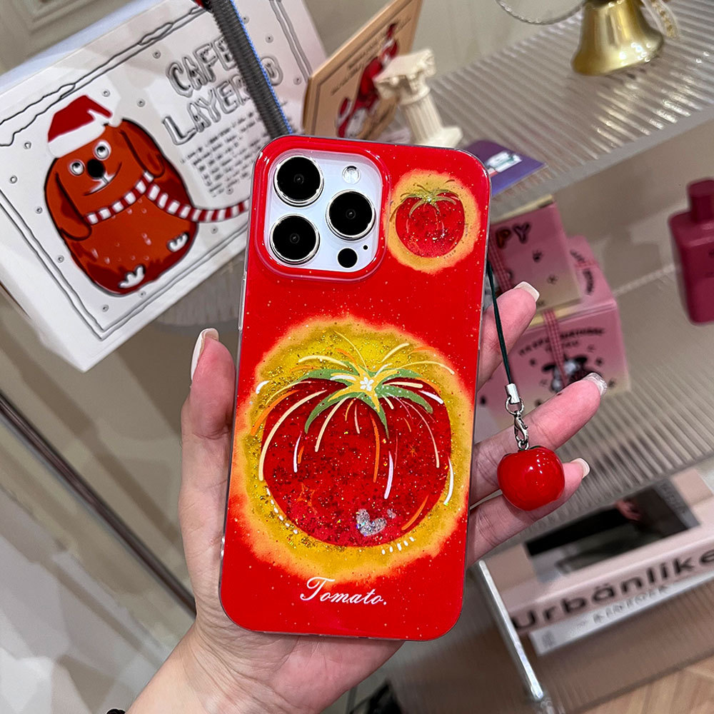 滴胶闪粉适用iphone17PROMAX手机壳红底烟花番茄苹果16防摔保护套