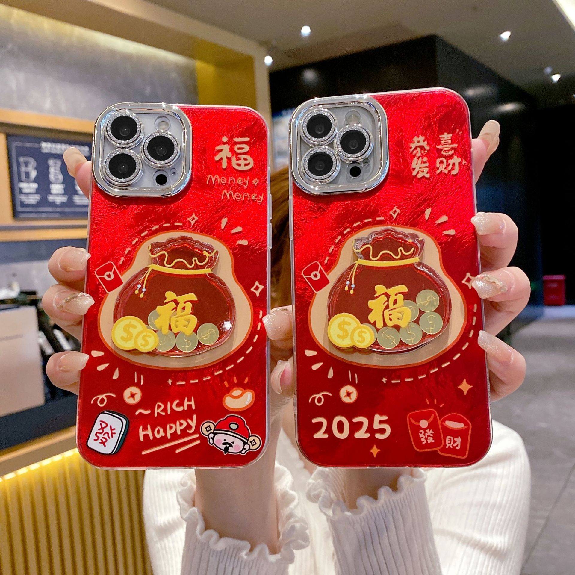 新年ケース iPhone17PRO対応 渦巻き模様 精密穴加工 福袋型スマホケース Apple16用 お祝い保護カバー13