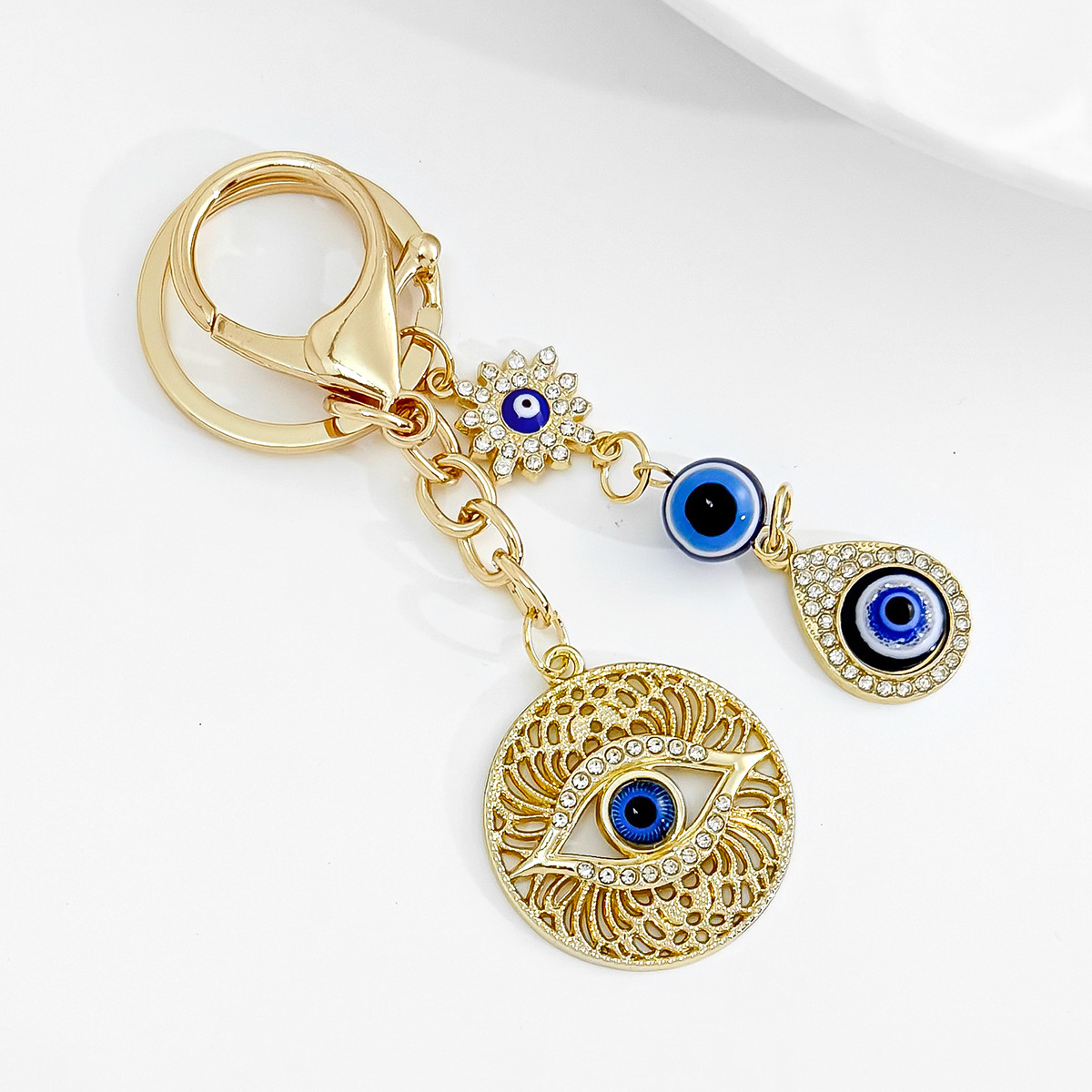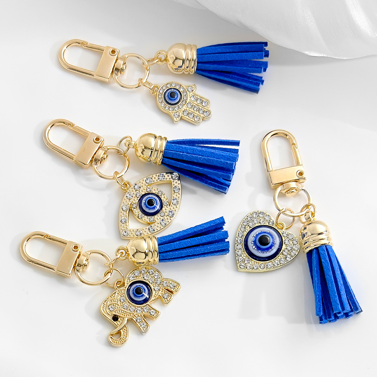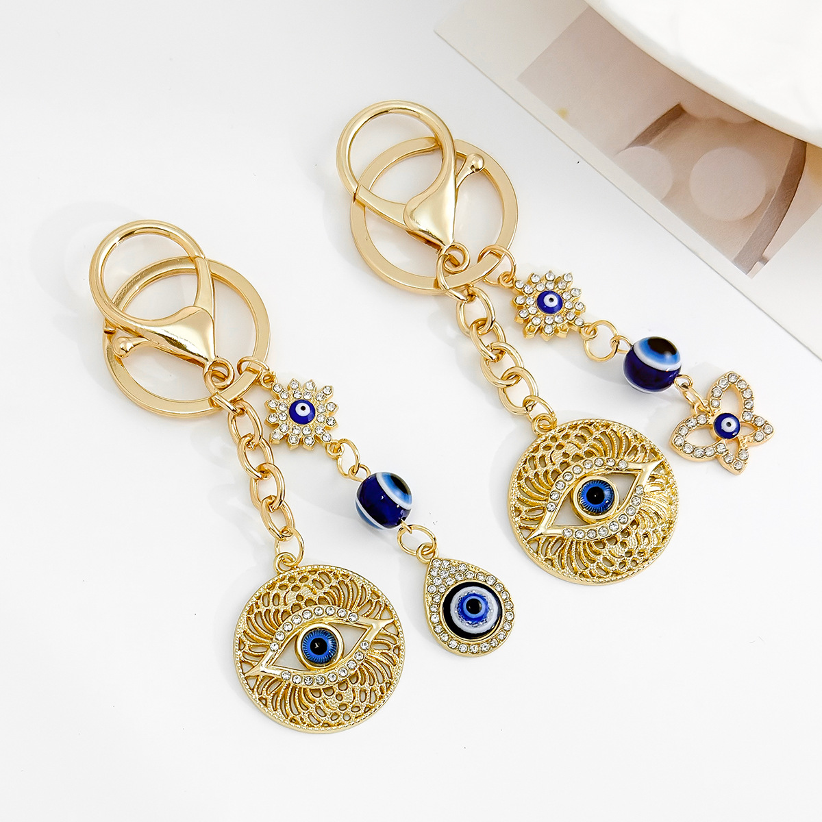 2024越境熱売トルコ悪魔の目のキーホルダー車載フリンジ金メッキアクセサリーペンダント欧米