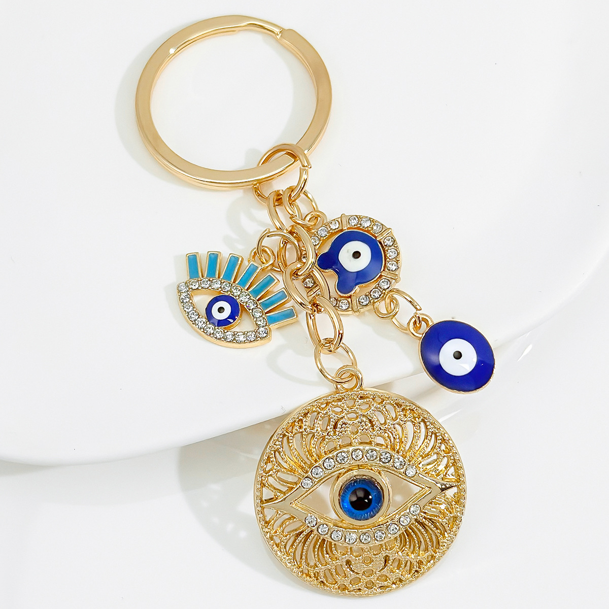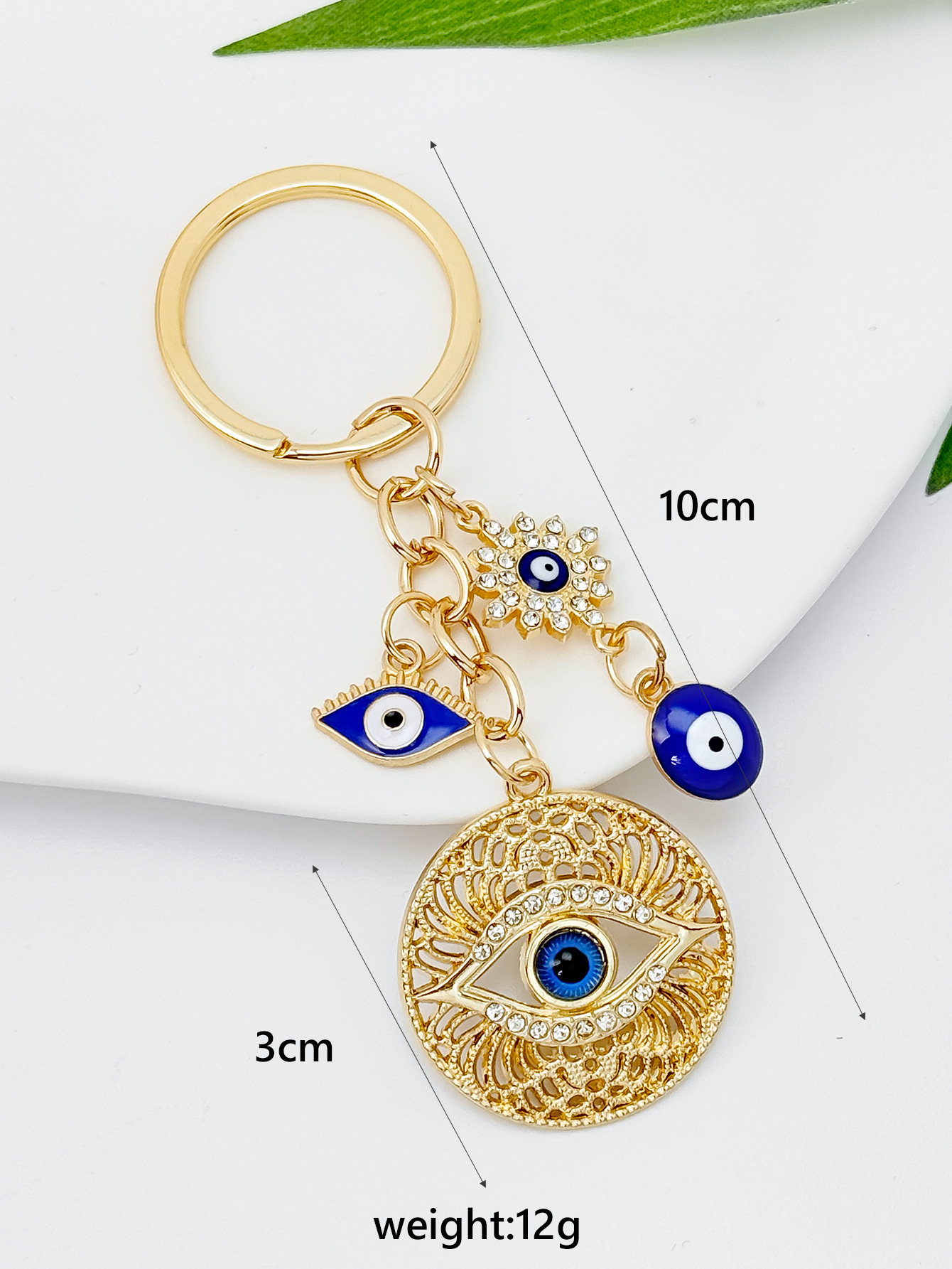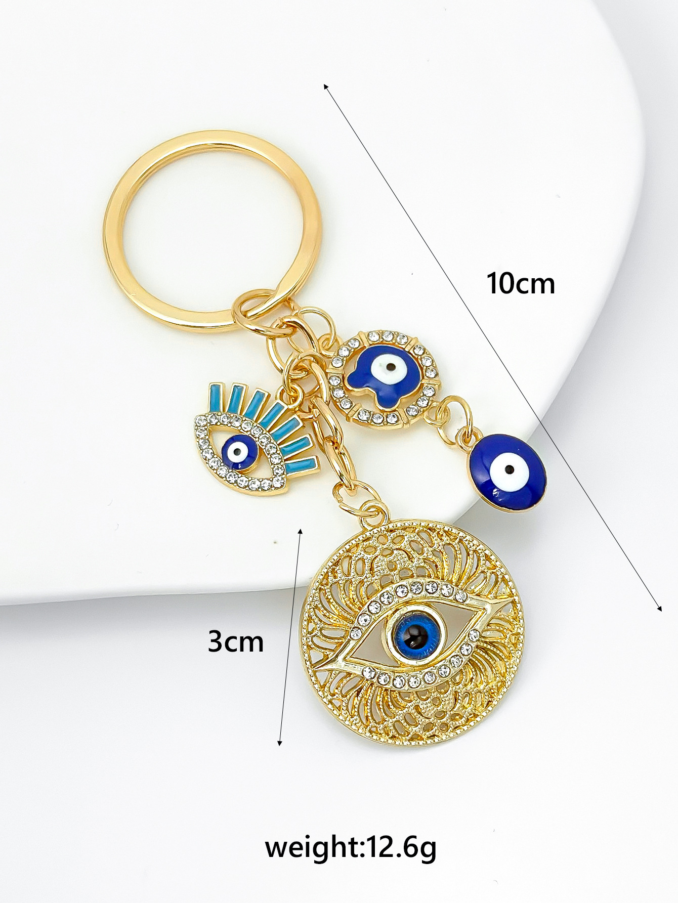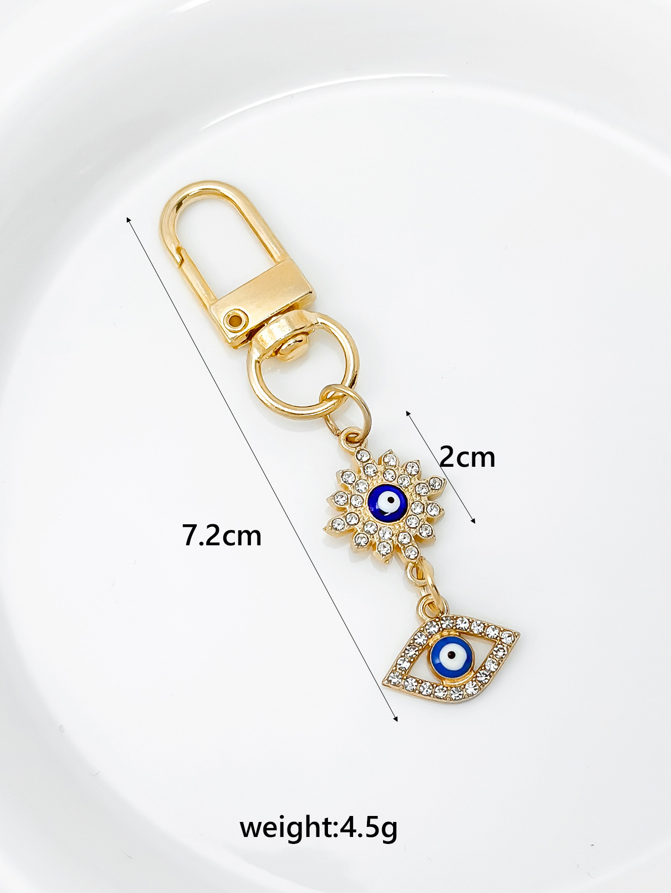 ヨーロッパとアメリカンスタイルの幾何学的なオイルドリップデーモンアイペンダントメタルキーホルダーパーソナライズされたエスニックスタイルのダイヤモンドがちりばめられたバッグペンダント