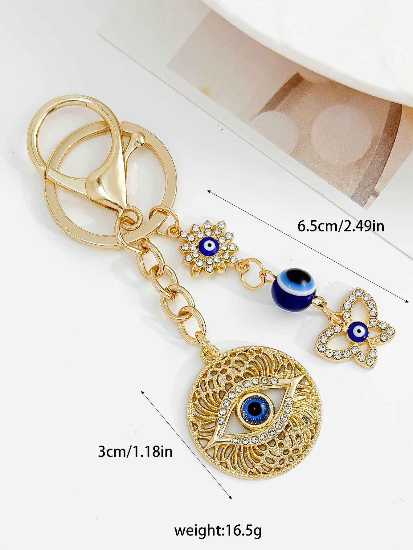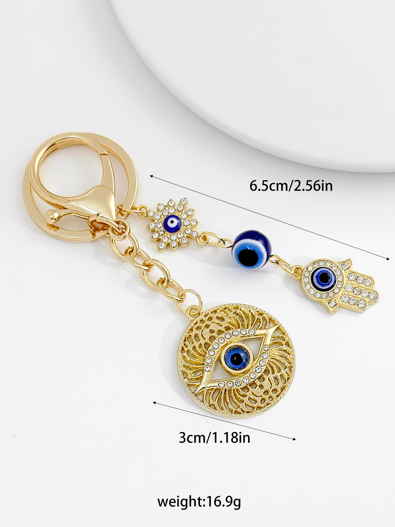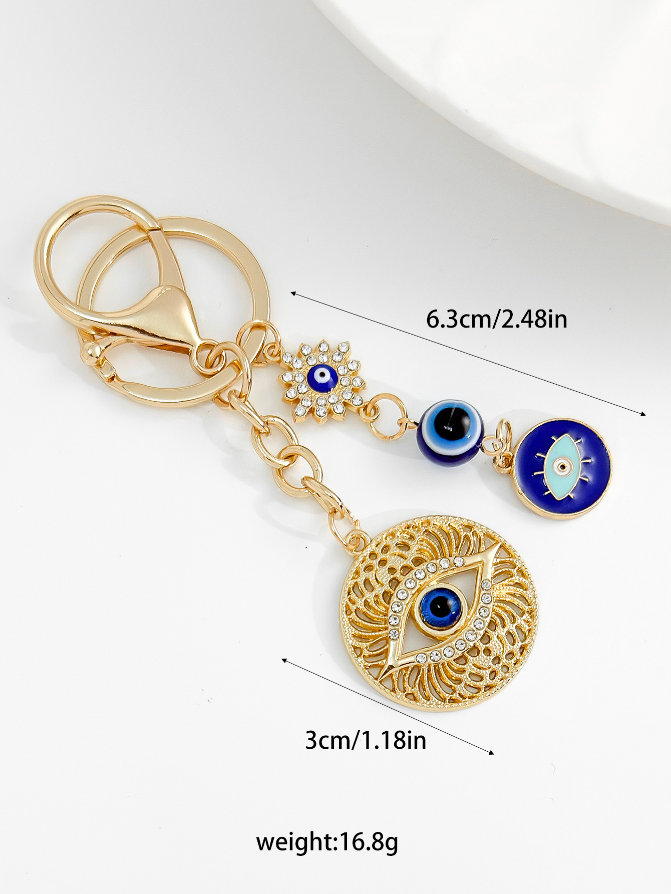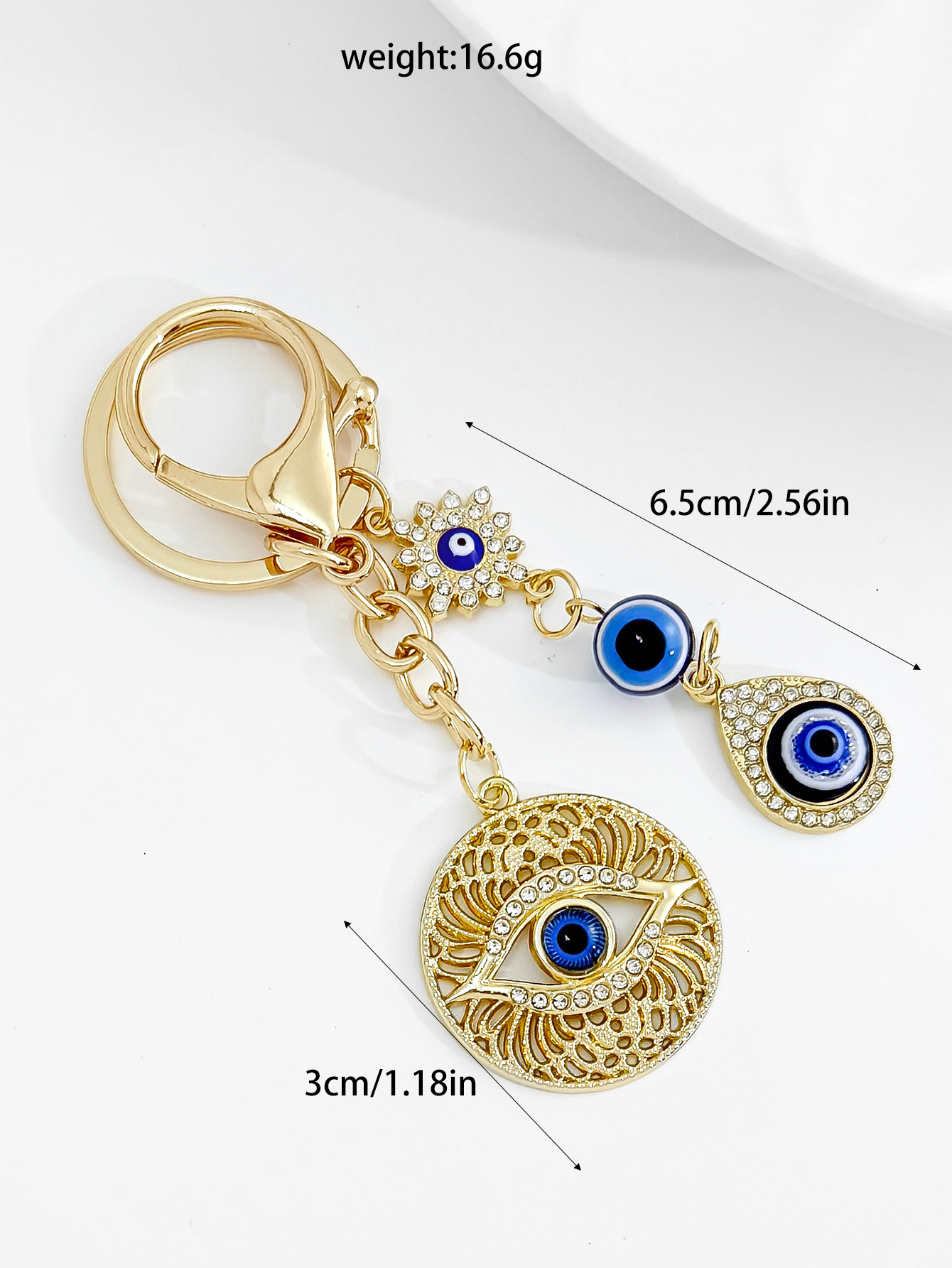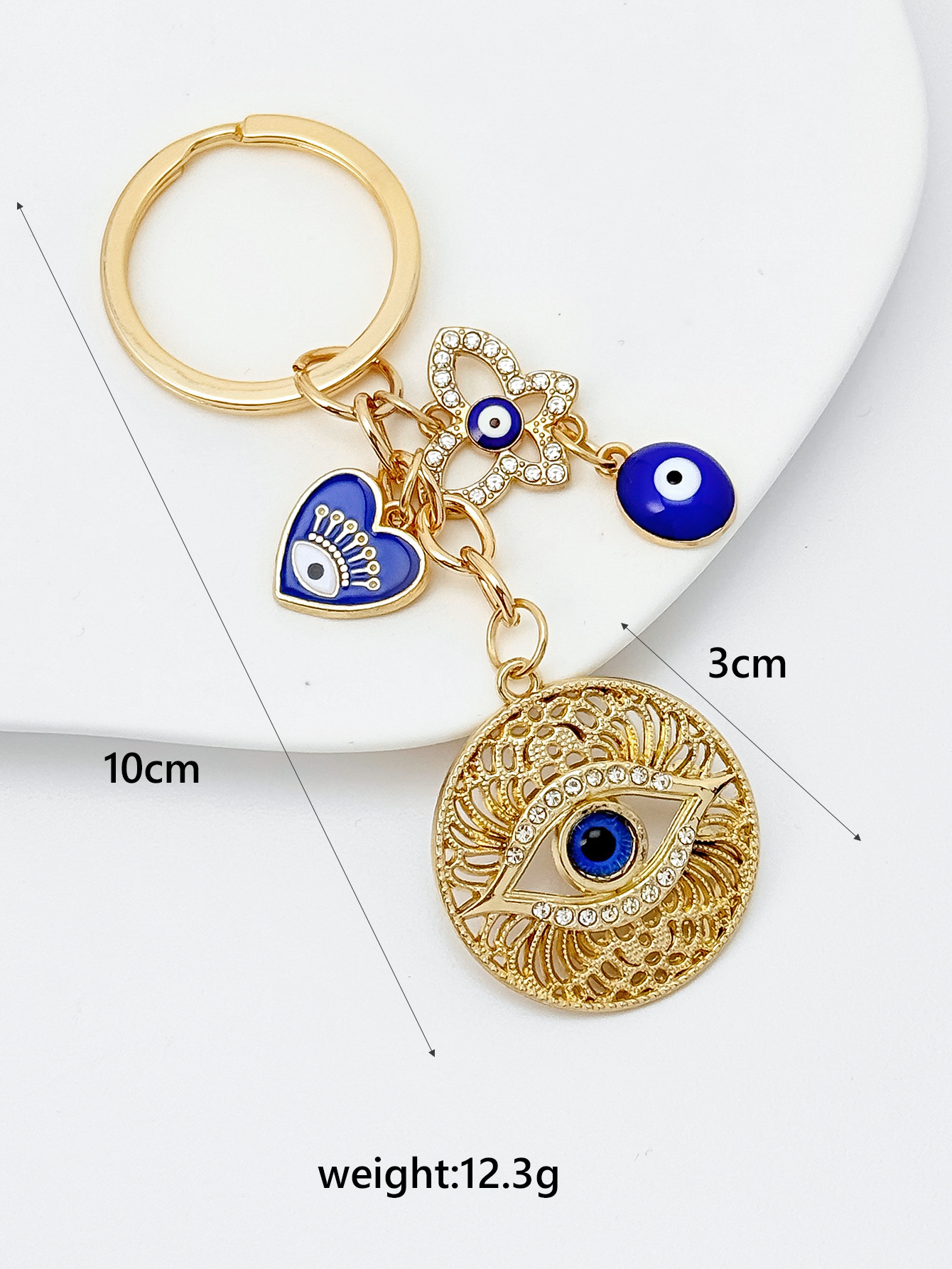 ヨーロッパとアメリカンスタイルの幾何学的なオイルドリップデーモンアイペンダントメタルキーホルダーパーソナライズされたエスニックスタイルのダイヤモンドがちりばめられたバッグペンダント