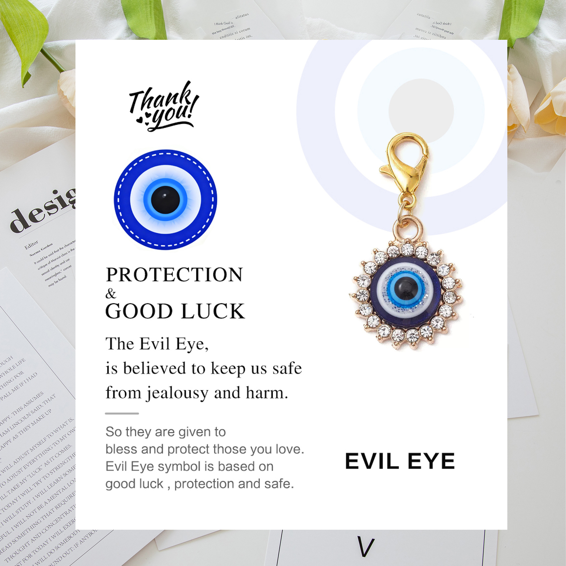 跨境热销PROTECTION GOOD LUCK英文好运卡镶钻恶魔之眼钥匙扣挂件