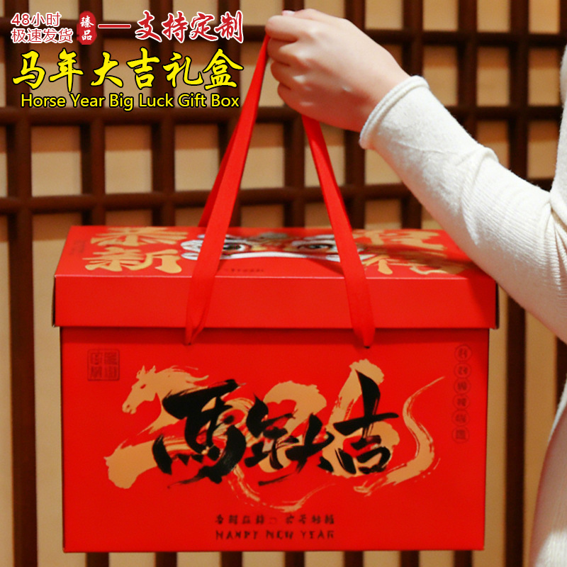 马年大吉新年礼盒空盒子通用零食大礼包年货包装盒现货批发包邮