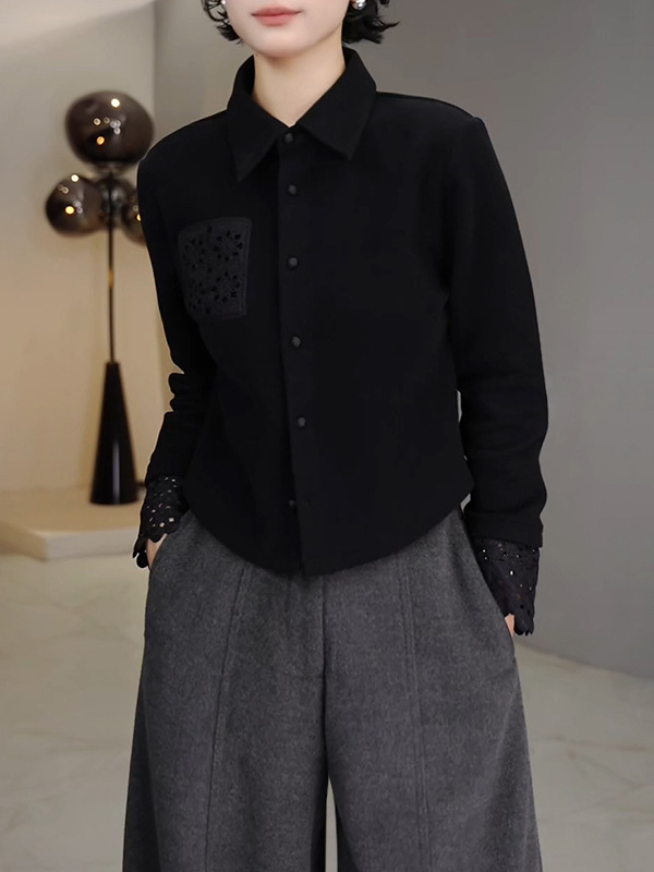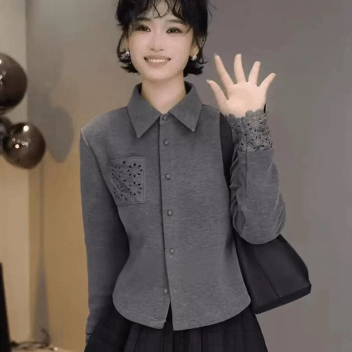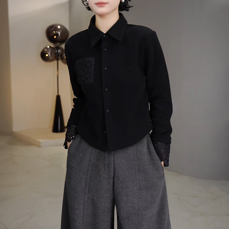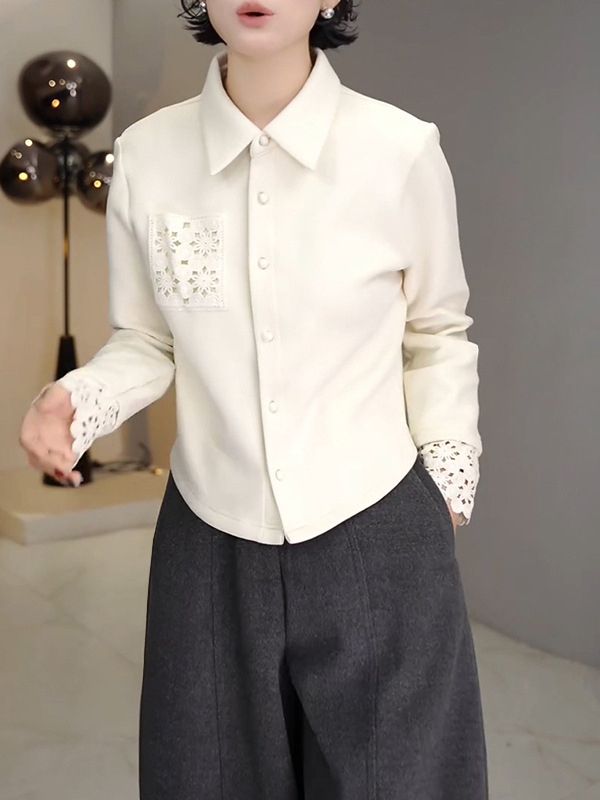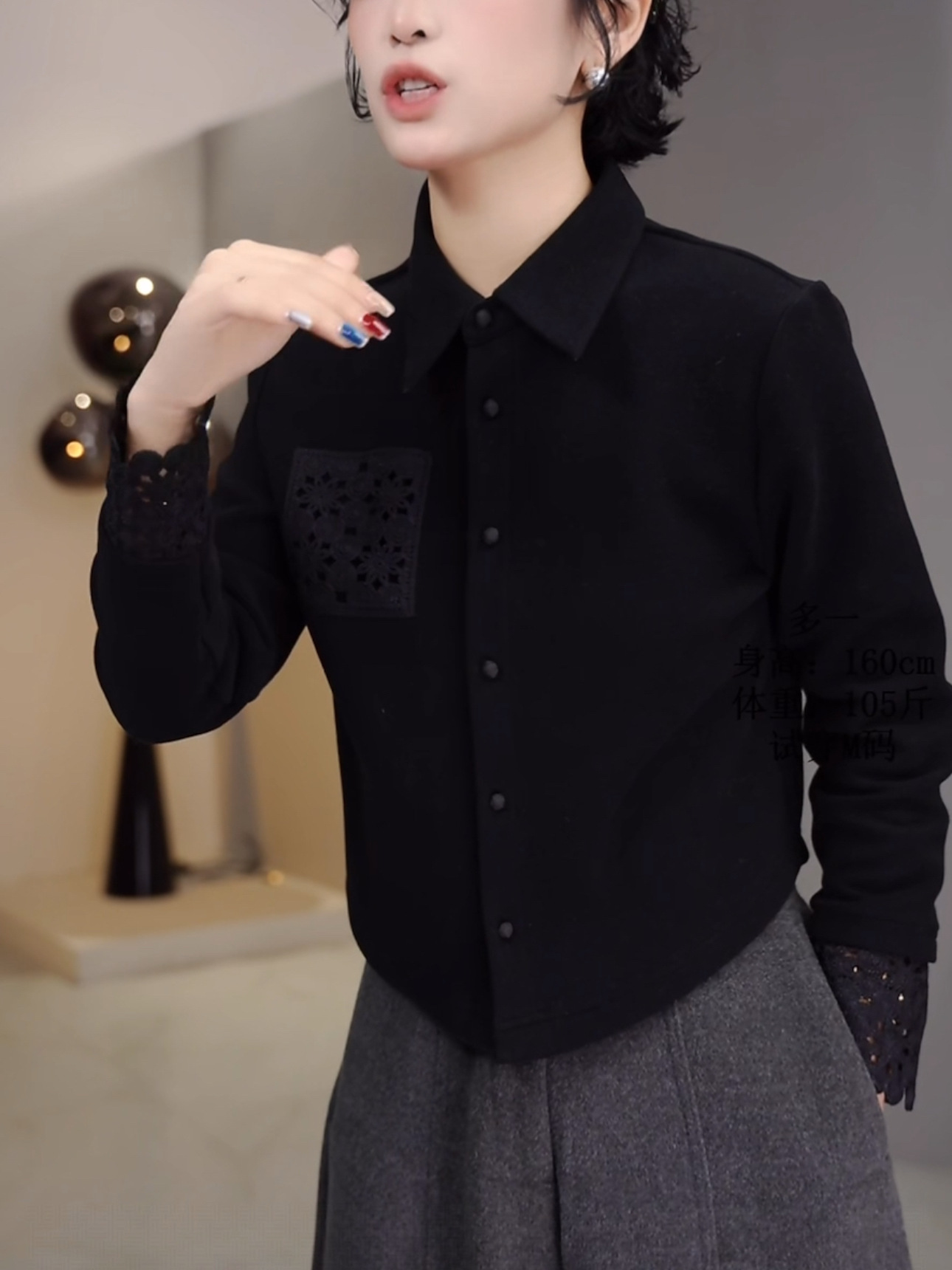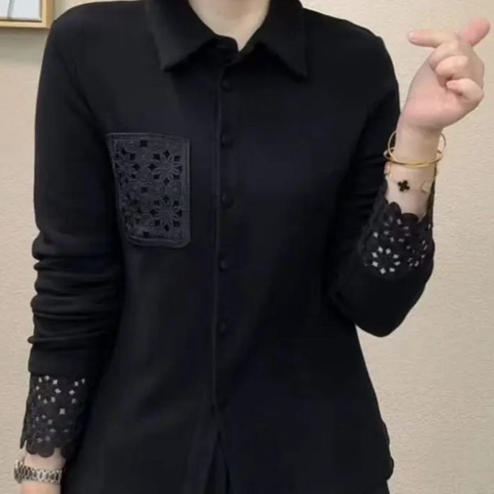 高级感钩花镂空长袖衬衫女2025秋冬新款时尚宽松洋气百搭翻领上衣