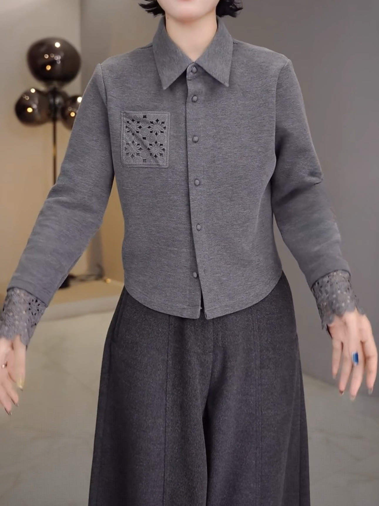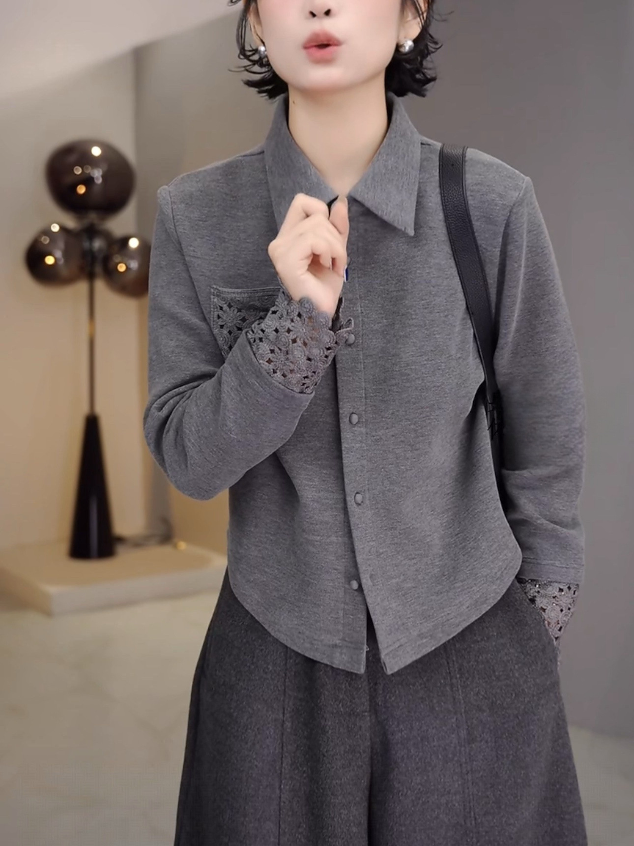 2025冬款双面绒衬衫领设计感百搭长袖显瘦上衣款女