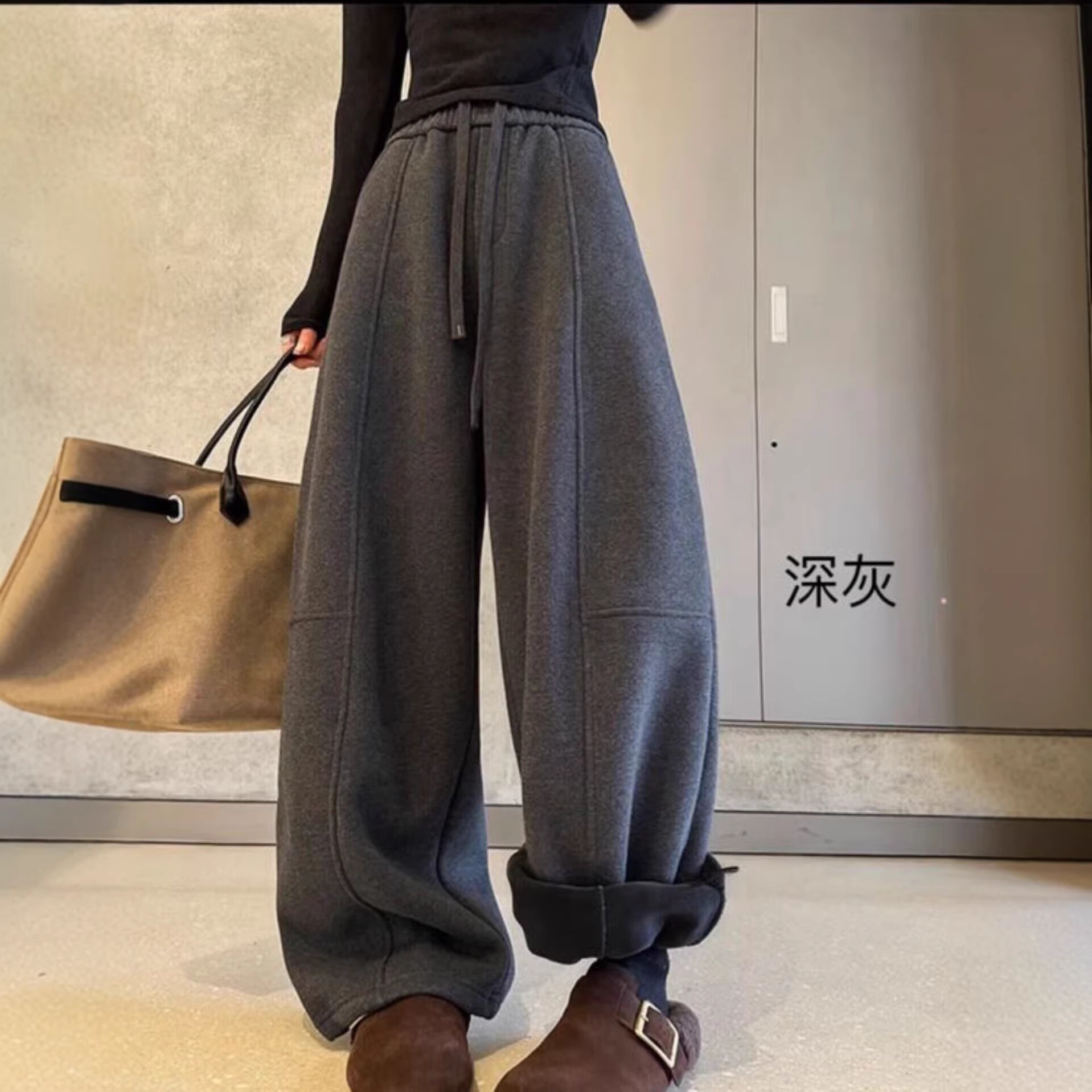 加绒加厚美式复古休闲运动裤女冬季2025新款宽松设计感高腰阔腿裤