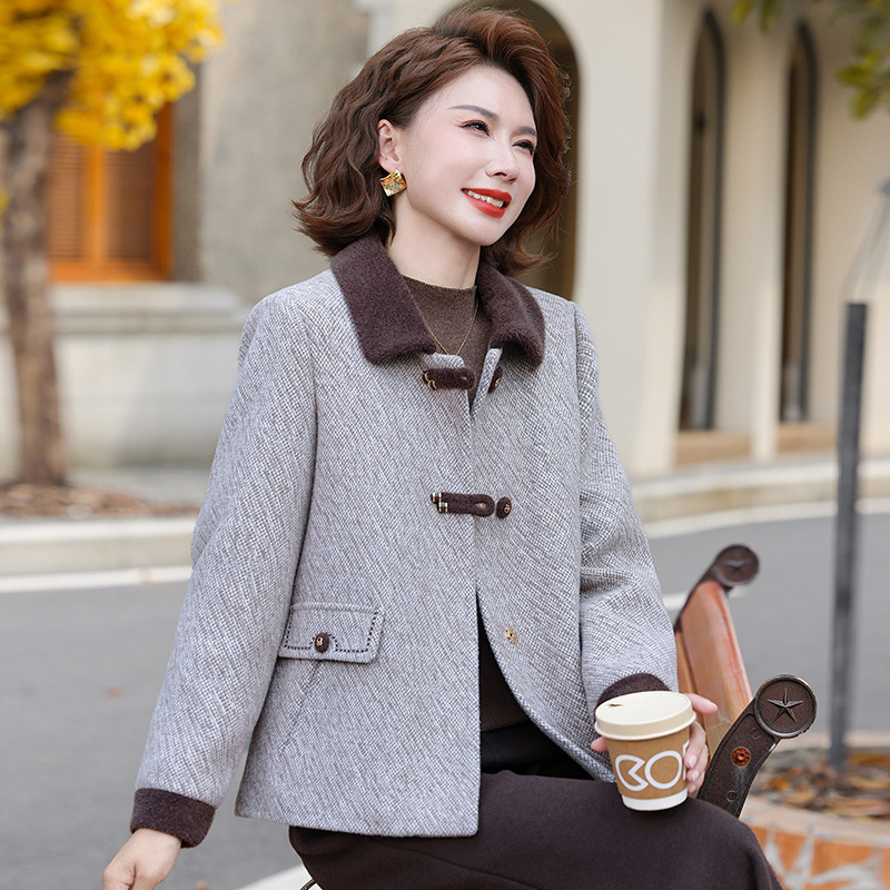 2025秋冬新款时尚洋气中老年女装加绒加厚上衣妈妈秋冬款毛呢外套