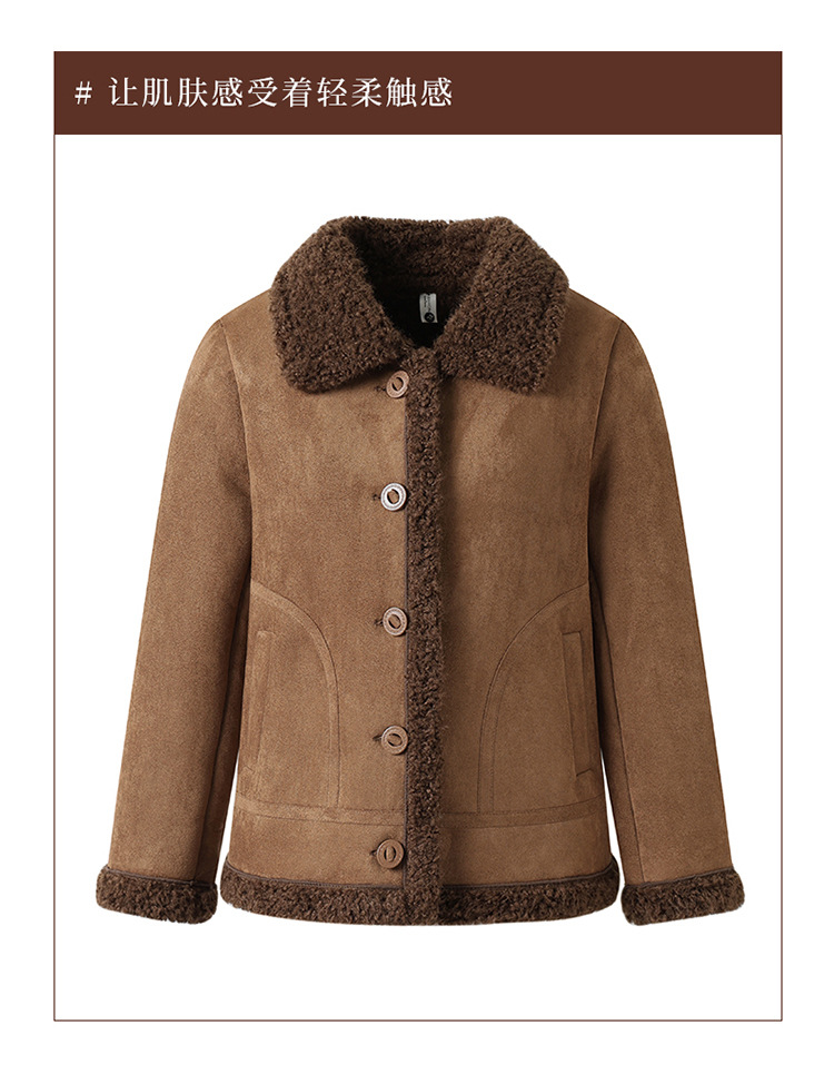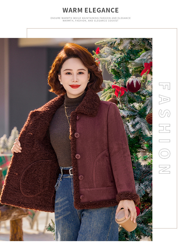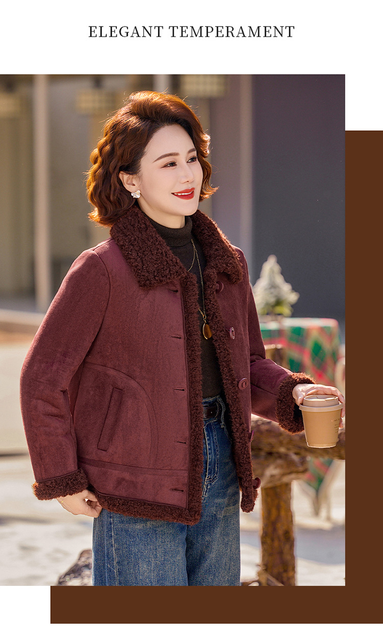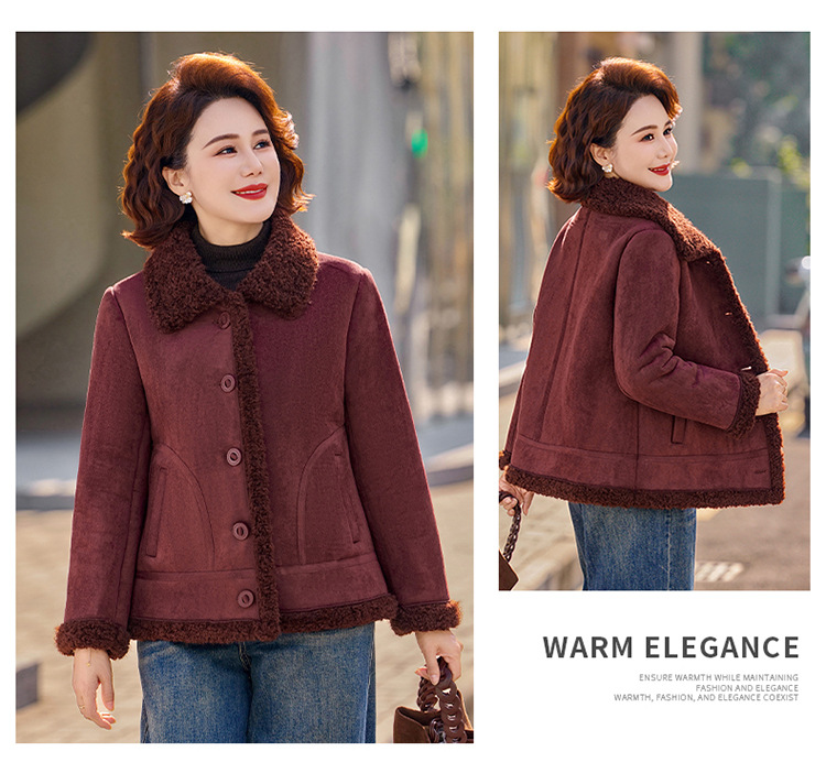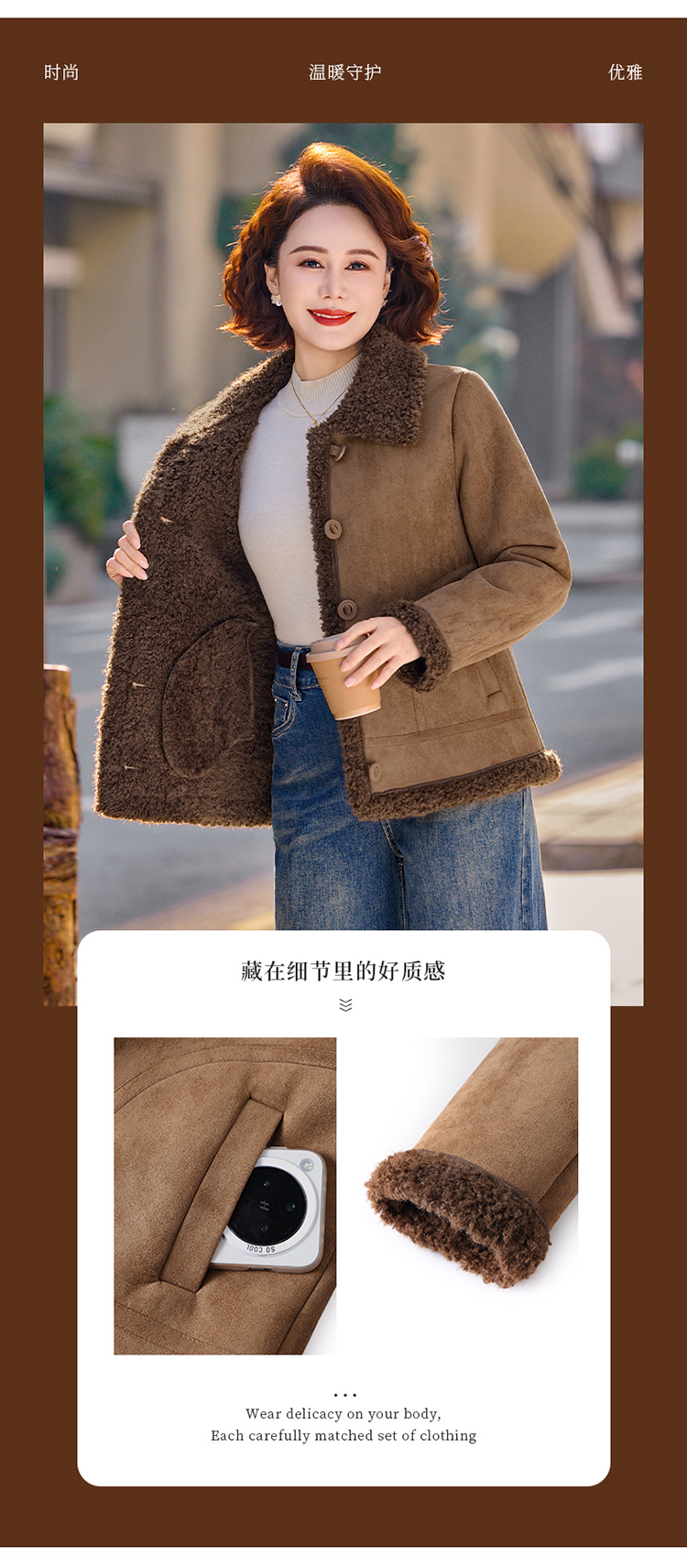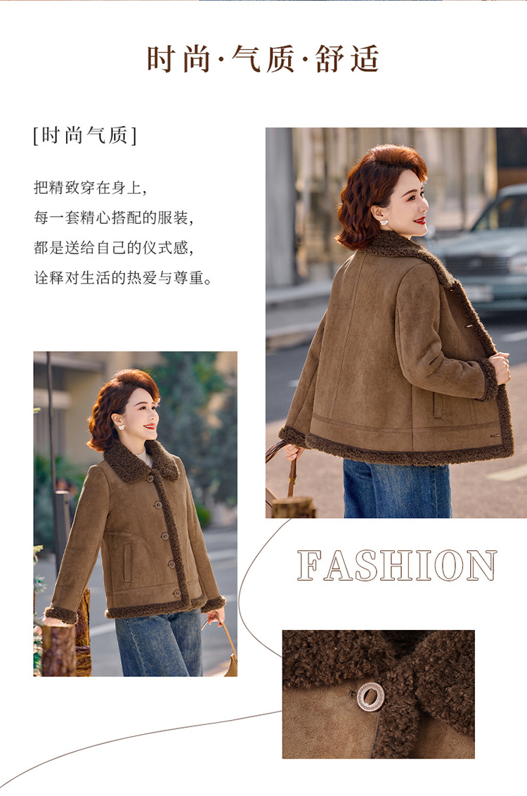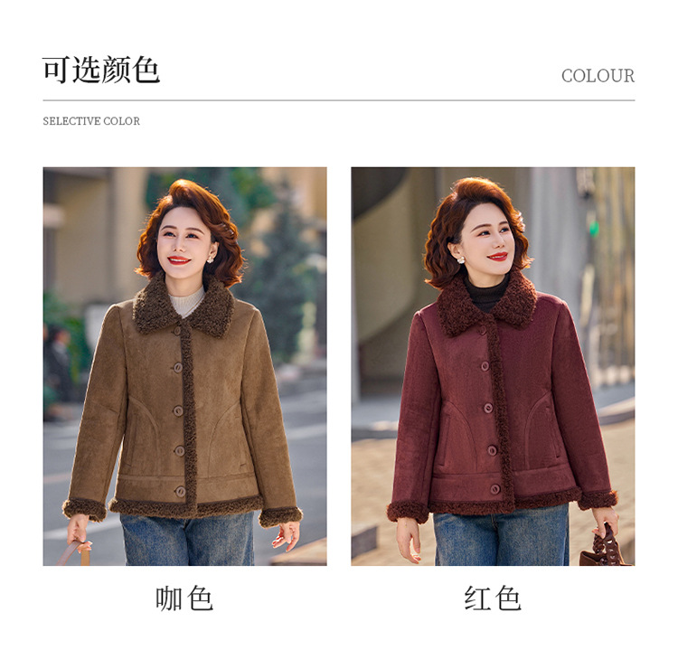 妈妈秋冬季皮毛一体外套女加绒加厚中老年女装冬装羊羔毛保暖上衣