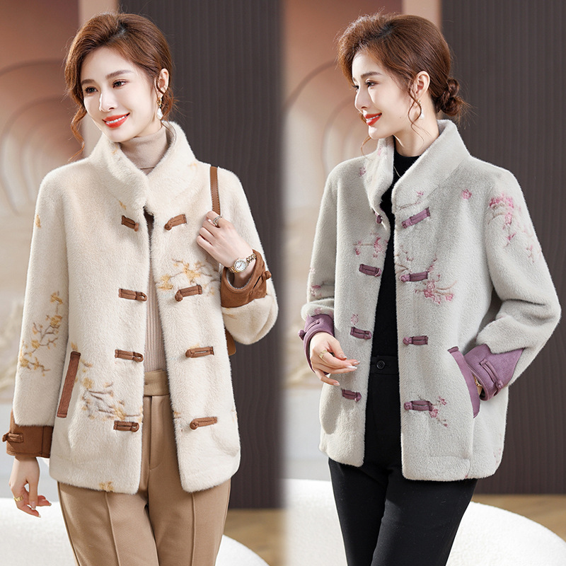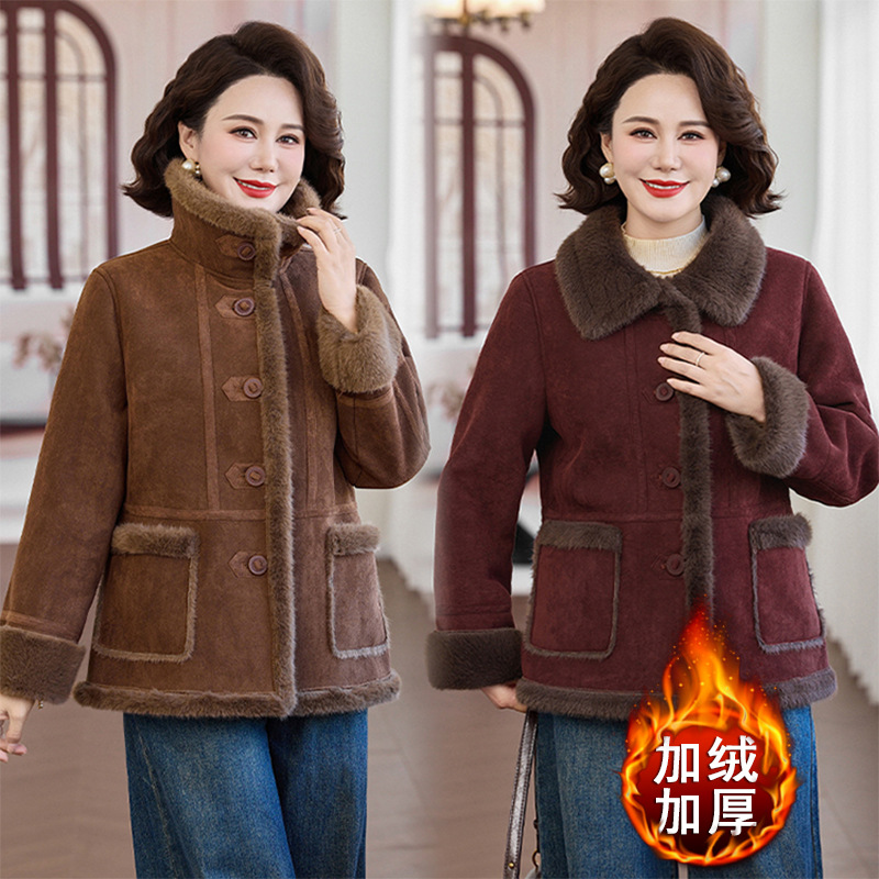 中老年人2025冬装加绒加厚仿皮毛一体绒外套妈妈秋冬爆款洋气上衣