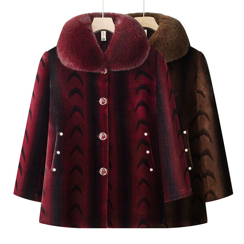 お母さんの冬服とベルベットの厚いミンクのベルベットのコートの中で高齢者の女装の洋風のおばあさんの服は毛皮のコートのようです