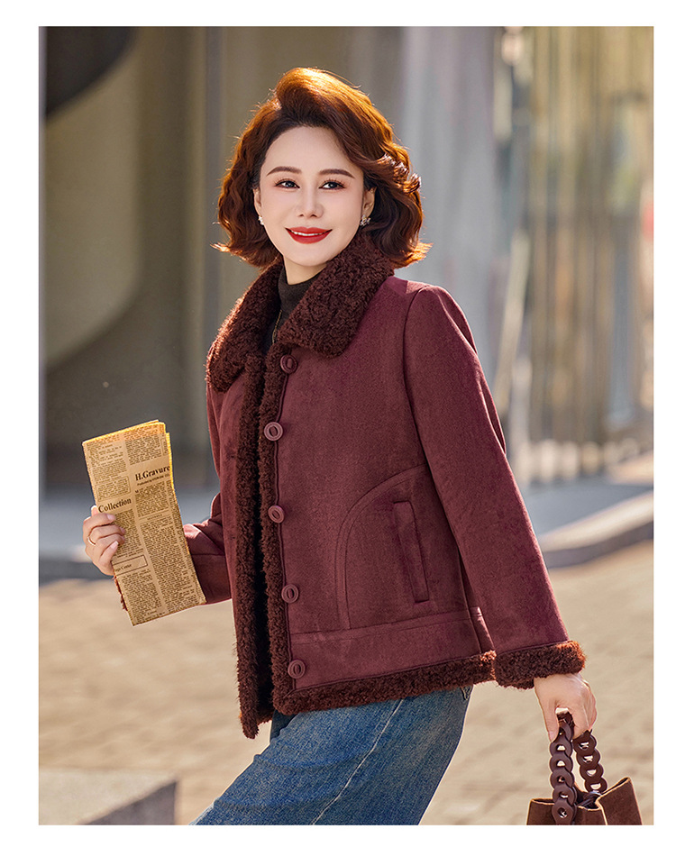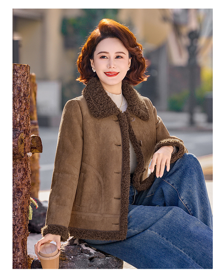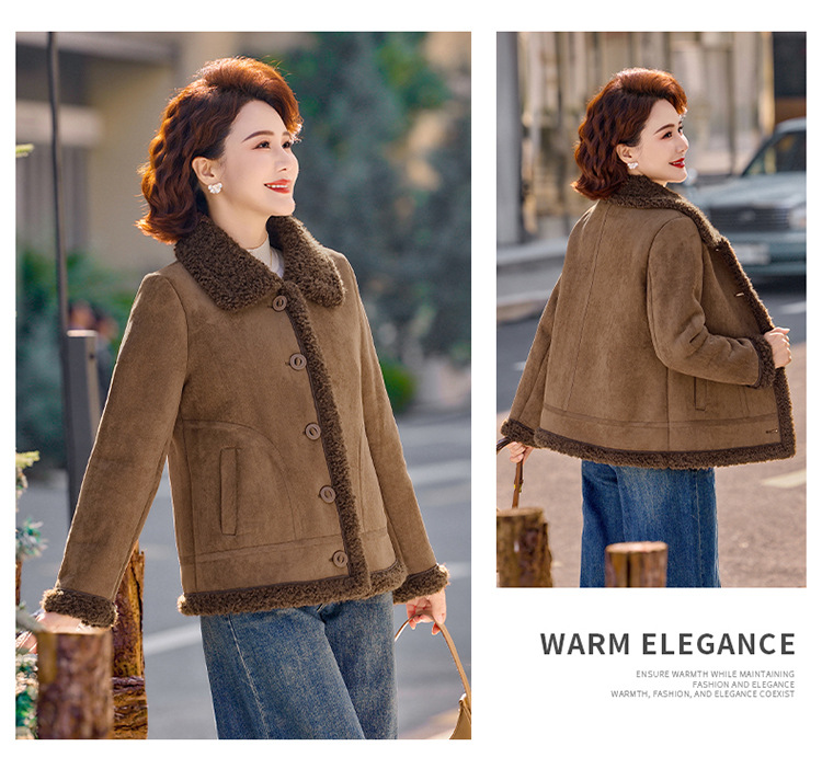 妈妈装皮毛一体绒外套中年加绒加厚棉衣女士2025新款时尚洋气上衣